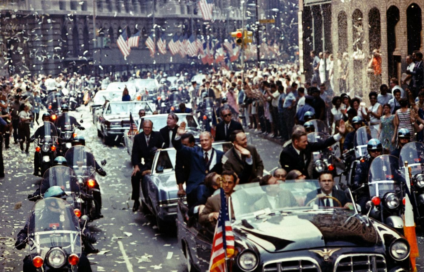 Według jednego z szefów programu Apollo Chrisa Krafta Armstronga wyznaczono na dowódcę statku Apolla 11, który jako pierwszy miał wylądować na Srebrnym Globie dlatego, że kierownictwo NASA widziało w nim człowieka bez „wygórowanego ego”. 21 lipca 1969 r. Armstrong zszedł z lądownika Eagle, postawił stopę na powierzchni Księżyca i wypowiedział swoje słynne słowa o „małym kroku człowieka, ale wielkim kroku ludzkości”. Tak był przejęty, że – jak wytykali mu potem niektórzy – zrobił mały błąd językowy, mówiąc o sobie „man” zamiast „a man”. Mówił potem, że kierowanie lądownikiem księżycowym było najtrudniejszą częścią misji, ale dało mu „uczucie uniesienia i dumy”.