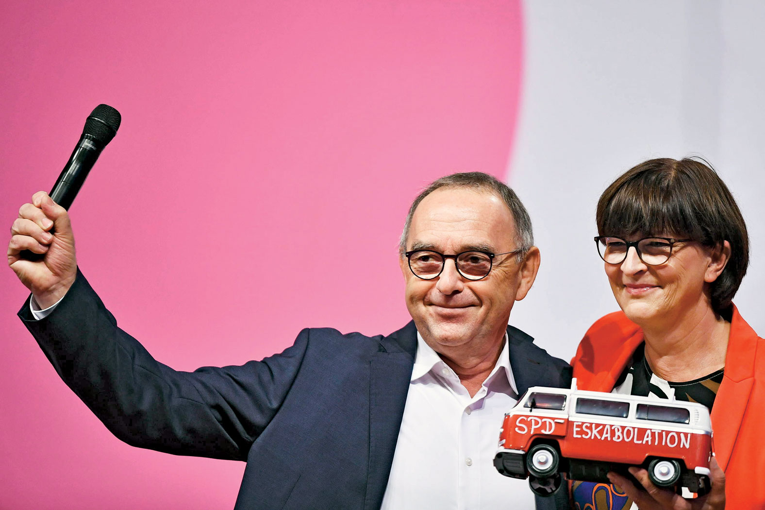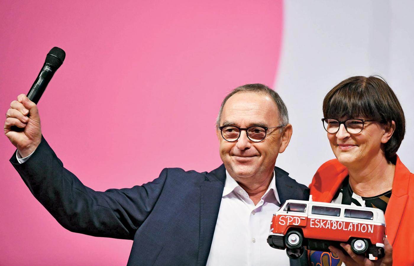 Eskens, 58 lat, pochodzi ze Schwarzwaldu. W młodości była stenotypistką, pracowała też w gastronomii, potem została informatyczką i zajęła się polityką cyfrową, zdobywając środowiskową renomę w dyskusji nad europejskim prawem autorskim. Norbert Walter-Borjans, 67 lat, (pierwsze nazwisko po żonie) ma większe doświadczenie – był rzecznikiem rządu Johannesa Rau w Nadrenii Północnej-Westfalii. Jego szef jako premier w Düsseldorfie i potem jako prezydent Niemiec gorąco wspierał zacieśnianie kontaktów z Polską. Ale Walter-Borjans uchodzi głównie za specjalistę w sprawach podatkowych i emerytalnych. Po zwycięstwie dziennikarze pytali oboje o politykę zagraniczną, ale zwycięzcy nie mieli zbyt wiele do powiedzenia. Najpierw jednak muszą zadecydować, czy zostają w koalicji. Partyjna lewica, która ich wybrała, konsekwentnie mówi: Nie!
