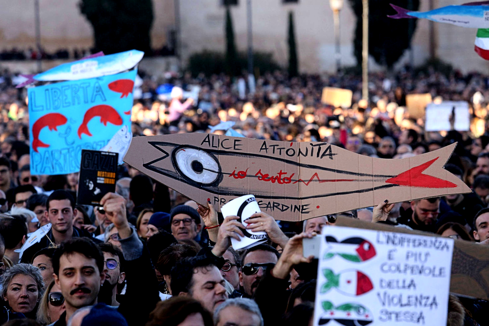 Po raz pierwszy ruch Sardynek pokazał się światu w ubiegłym miesiącu na Piazza Maggiore, centralnym placu Bolonii. Blisko 60-tys. zgromadzenie, w formie i treści przypominające bardziej happening niż poważny protest, miało zasadniczo jeden cel. Było wyrazem sprzeciwu całego regionu Emilia Romagna (którego Bolonia jest stolicą) wobec zapowiedzi Matteo Salviniego, że odbije prowincję z rąk lewicy w nadchodzących wyborach samorządowych.