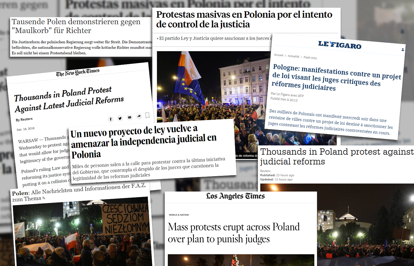 Protesty przeciw kolejnej reformie systemu sądownictwa autorstwa PiS odbyły się wczoraj w ponad 200 miastach kraju. Wydarzenia z Polski obszernie komentują telewizje, gazety i serwisy informacyjne na świecie, również te, które dotąd poświęcały mniej miejsca wydarzeniom nad Wisłą.