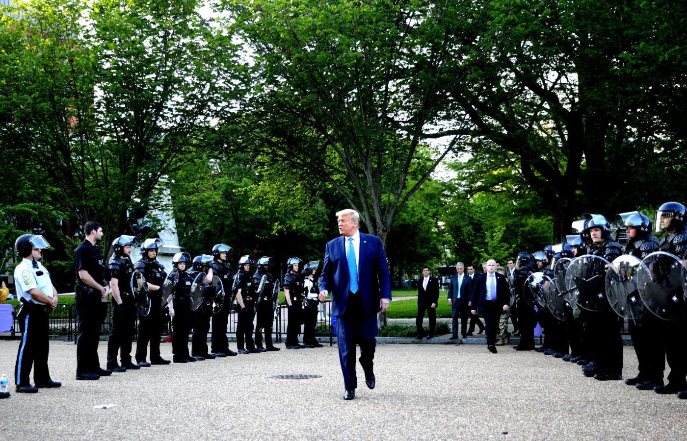 Prezydent od kilku dni wzywał gubernatorów stanów do stanowczego stłumienia zamieszek, w jakie przerodziły się pokojowe protesty w kraju po zabójstwie czarnoskórego George′a Floyda przez białego funkcjonariusza w Minneapolis. W poniedziałek, po niedzielnych rozruchach w Waszyngtonie, ściągnął do miasta wojsko, które razem z policją zablokowało demonstrantom dotarcie do Białego Domu. Protestujący, przeważnie biali młodzi ludzie, spokojnie stali, wznosili okrzyki i banery z hasłami poparcia dla Black Lives Matter, ruchu sprzeciwu wobec zabijania niewinnych Afroamerykanów. W pewnym momencie siły porządkowe ruszyły do natarcia, rozpraszając demonstrantów z użyciem gazów łzawiących i gumowych kul.