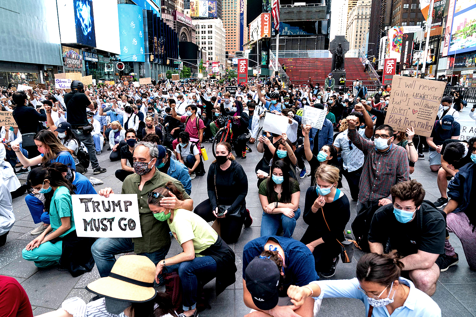 Kiedy zamieszki dotarły do Waszyngtonu, Trump najpierw ukrywał się w podziemnym bunkrze na terenie Białego Domu. W poniedziałek wieczorem przemówił, wzywając gubernatorów do „zdominowania” ulicznych protestów. Zagroził wprowadzeniem do stanów regularnej armii federalnej, wezwał ją do stolicy na pomoc i podkreślił, że jest „prezydentem prawa i porządku”. Następnie policjanci wraz z żandarmerią wojskową zaatakowali pokojowych demonstrantów zgromadzonych na pl. LaFayette’a gazem łzawiącym i gumowymi kulami, aby oczyścić teren dla prezydenta, który udał się do pobliskiego kościoła episkopalnego św. Jana. Przed wejściem dał się sfilmować kamerom telewizyjnym z uniesioną Biblią.