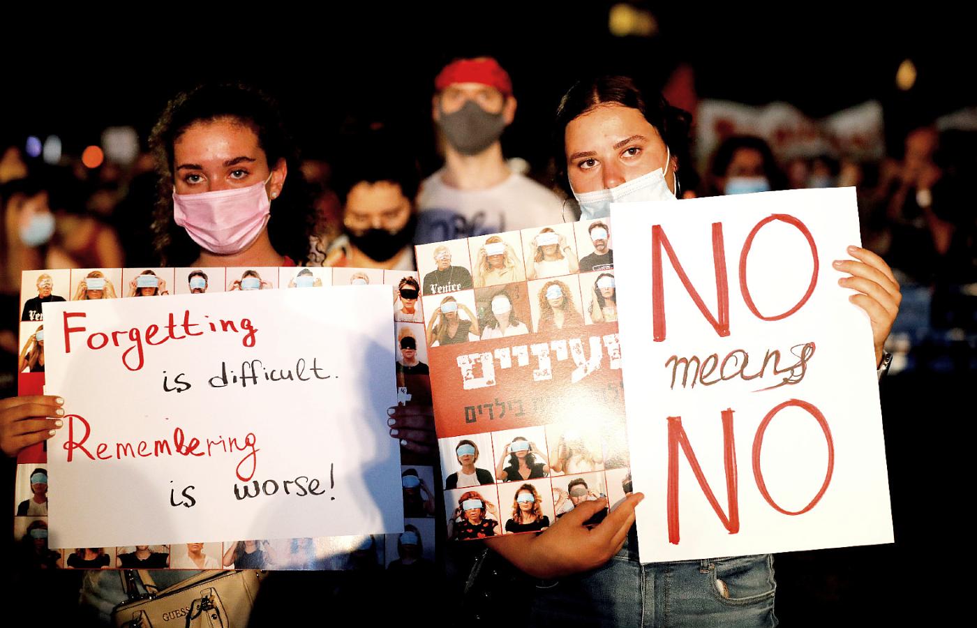 W ostatni weekend Izraelczycy, często ubrani na czerwono, domagali się zwiększenia sił i środków na walkę z przemocą seksualną wobec kobiet i wsparcie dla ofiar. „»Nie« znaczy »nie«. Której części nie rozumiesz?”, „To nie błąd, to polityka”, „Dosyć, oskarżcie gwałcicieli!” – skandowali w Tel Awiwie. Na pl. Rabina zebrało się ok. 1,5 tys. osób. Protesty odbyły się w wielu innych miastach.