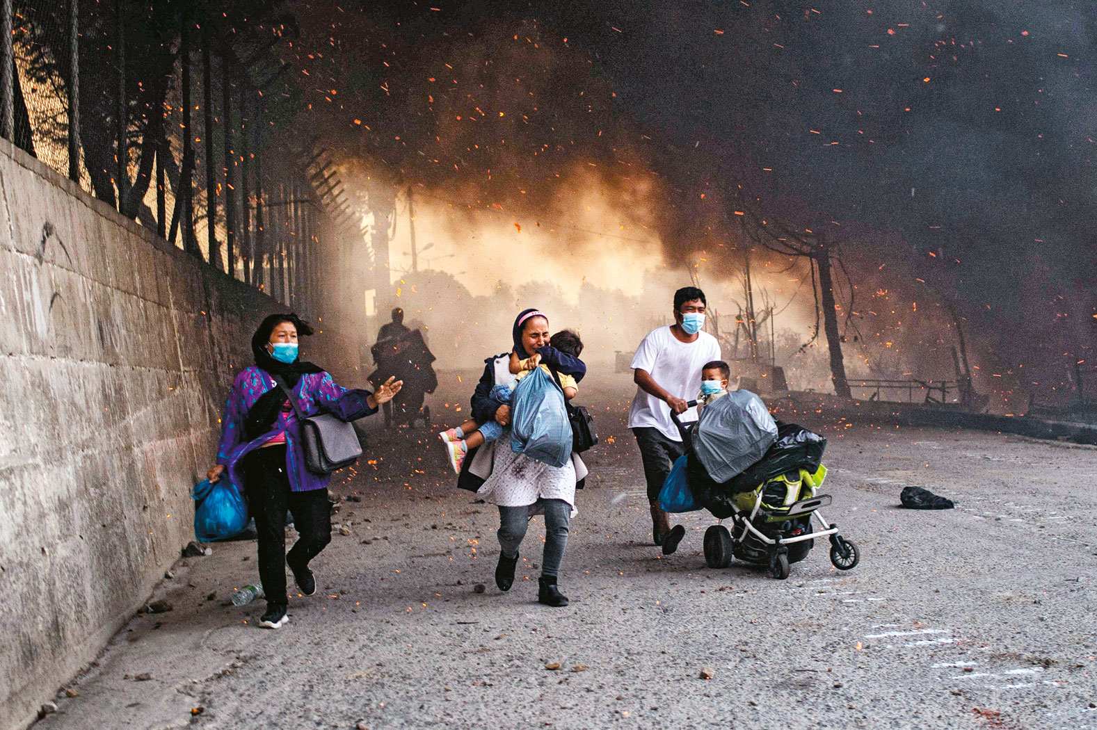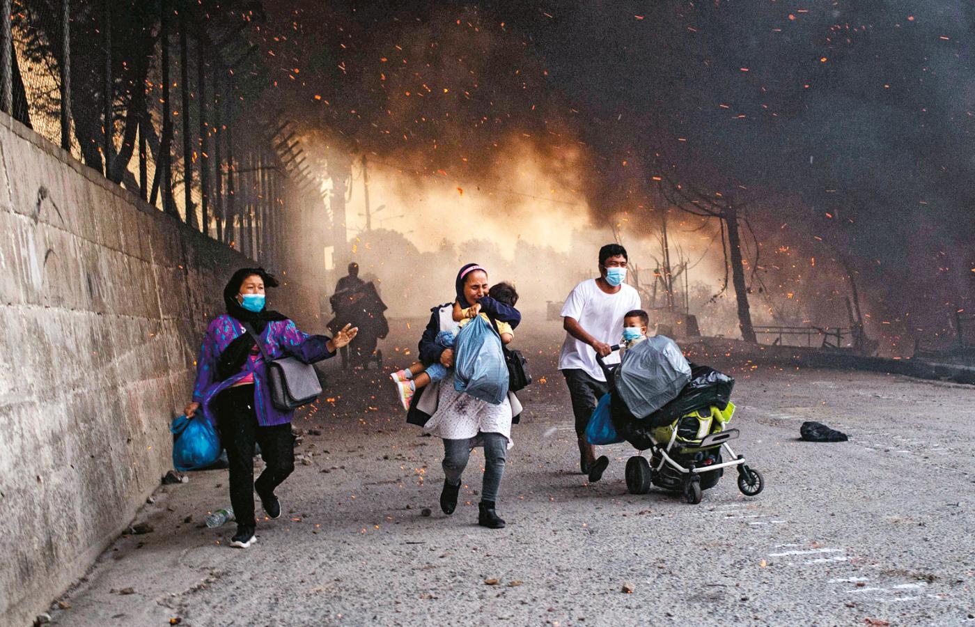 W obozie Moria zapalnikiem był też wirus, podczas testów odkryto 37 nosicieli, zarządzono kwarantannę rodzin, przeciw której wybuchł bunt – i w wielkim namiotowisku wybuchły pierwsze pożary. Podpalali ludzie z obozu, ale potem pewnie także miejscowi, na wieść o wirusie, aby dokończyć dzieła. Jedni i drudzy mieli serdecznie dość tej sytuacji, ciągnącej się od miesięcy – i w pierwszym odruchu solidarni wiwatowali, że problem poszedł z dymem. Później powstały konkurencyjne blokady. Silne posiłki policyjne, włączywszy ciężki sprzęt i armatki wodne, okrążały uchodźców rozpierzchłych po wyspie, aby opanować koronawirusa. A miejscowi ultrasi blokowali drogi dojazdowe, aby do obozu nie dotarła pomoc. 4 tys. miejsc dla najbardziej potrzebujących zapewniły tymczasowo trzy statki przybyłe z kontynentu. Wojsko rozstawiło 500 namiotów. Pilnie przysłano 200 tys. testów.
