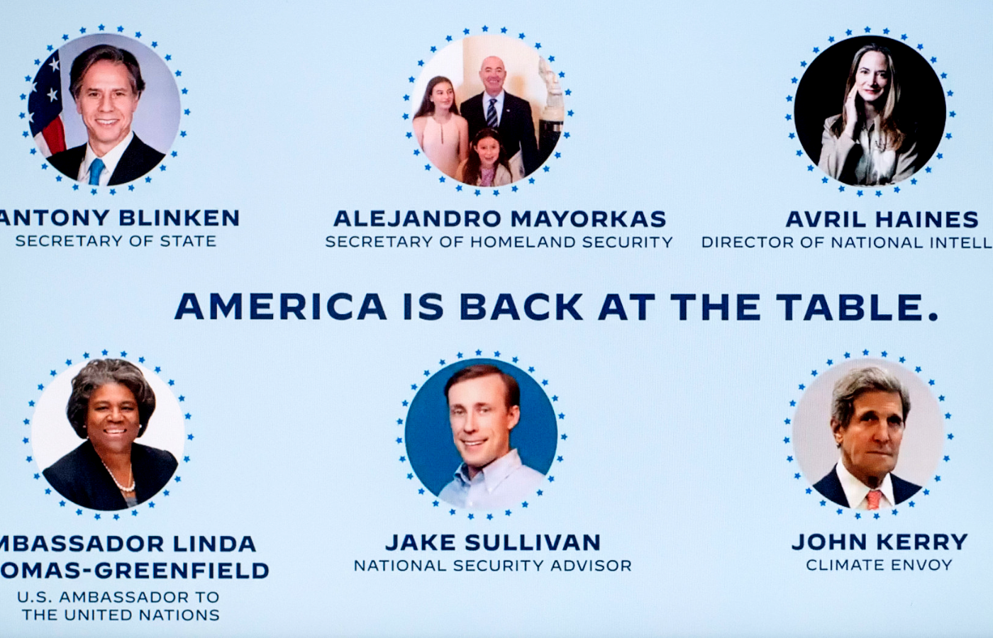 Sekretarzem stanu zostanie weteran dyplomacji – 58-letni Tony Blinken, długoletni doradca Bidena ds. polityki zagranicznej, były zastępca sekretarza stanu w administracji Baracka Obamy (2009–17). Doradcą ds. bezpieczeństwa narodowego będzie 41-letni Jake Sullivan, który pełnił tę samą funkcję u Bidena jako wiceprezydenta. Obaj mają reputację sprawnych realizatorów polityki strzeżenia liberalno-demokratycznego ładu międzynarodowego we współpracy z sojusznikami, prowadzonej przez demokratycznych prezydentów po II wojnie światowej (Trump z nią zerwał).