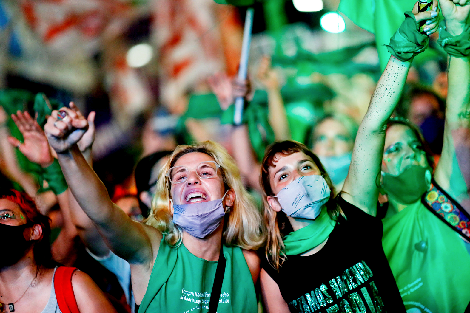 Przed budynkiem Kongresu, gdzie w jego izbie wyższej toczyła się nocna debata, czuwały zwolenniczki i przeciwniczki nowego prawa. Pierwsze na zielono – z zielonymi flagami, chustami, wstążkami; drugie – w kolorze błękitu z argentyńskiej flagi.