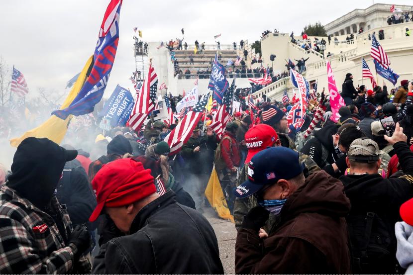 Protestujący zwolennicy ustępującego prezydenta, którzy zebrali się przed Kapitolem przed godz. 21 czasu polskiego (godz. 15 czasu lokalnego), przerwali metalowe ogrodzenia ustawione przed budynkiem i starli się z policją. Zamieszczane w sieci materiały wideo pokazywały zgromadzonych pod amerykańskim Kapitolem manifestantów walczących z funkcjonariuszami policji, którzy użyli gazu pieprzowego, by powstrzymać napierający tłum.