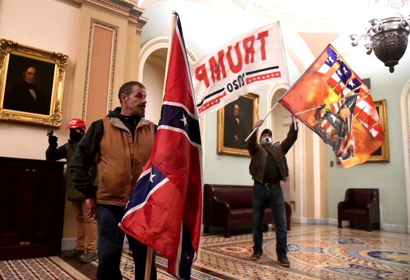 Po przemówieniu Trumpa jego zwolennicy przeszli pod siedzibę Kongresu, gdzie wszczęli zamieszki i walki z policją. W końcu wdarli się do samego budynku, m.in. do sali obrad Senatu USA, w tym na mównicę, oraz do biura przewodniczącej Izby Reprezentantów Nancy Pelosi. Część z nich była uzbrojona. Protestanci robili sobie filmiki i zdjęcia w zajętej sali Senatu, która jest jednym z symboli amerykańskiej demokracji.