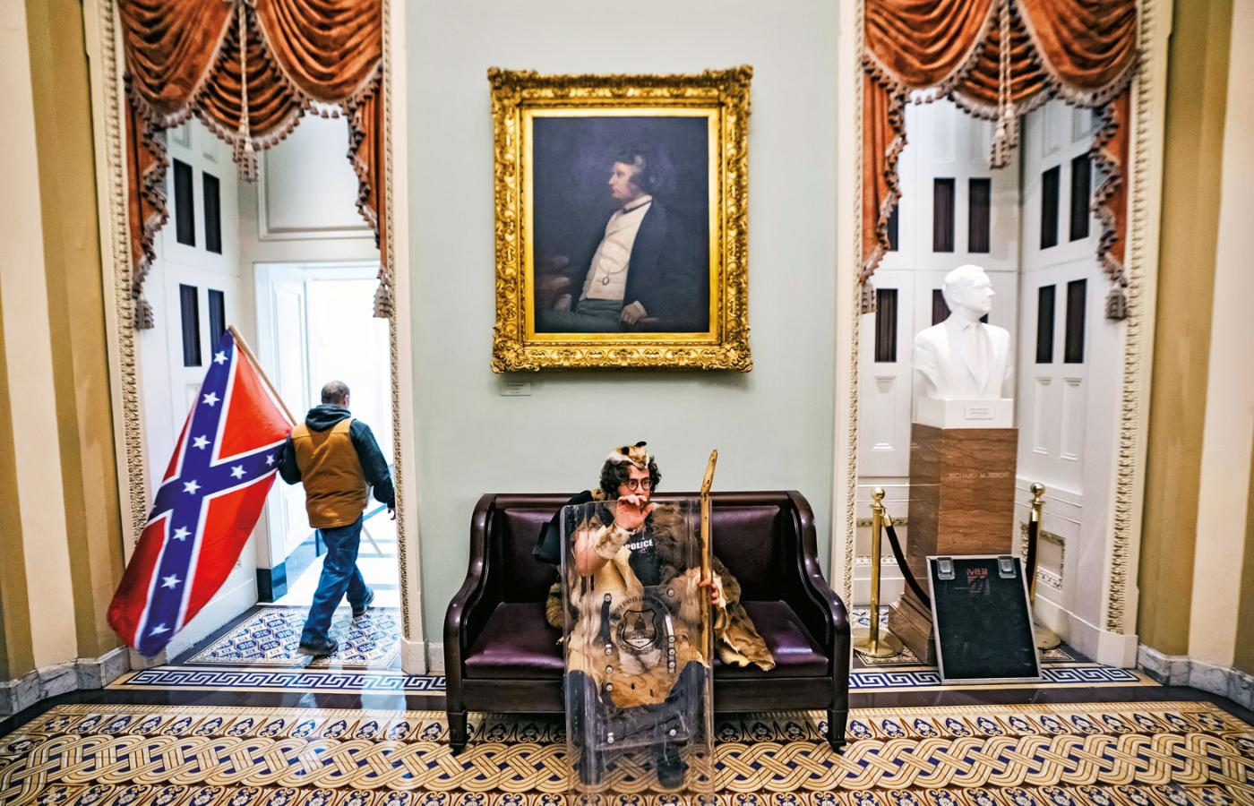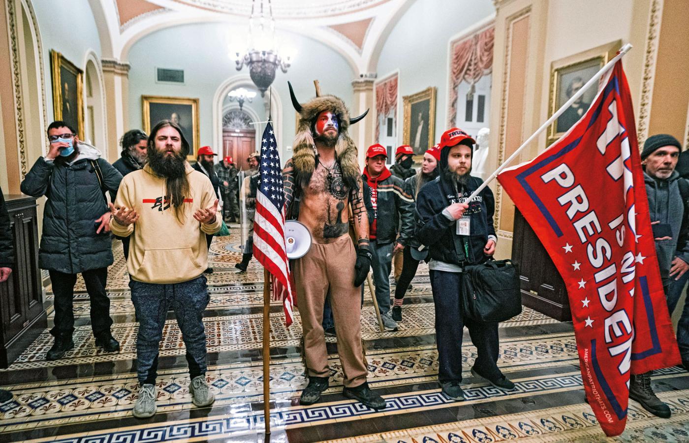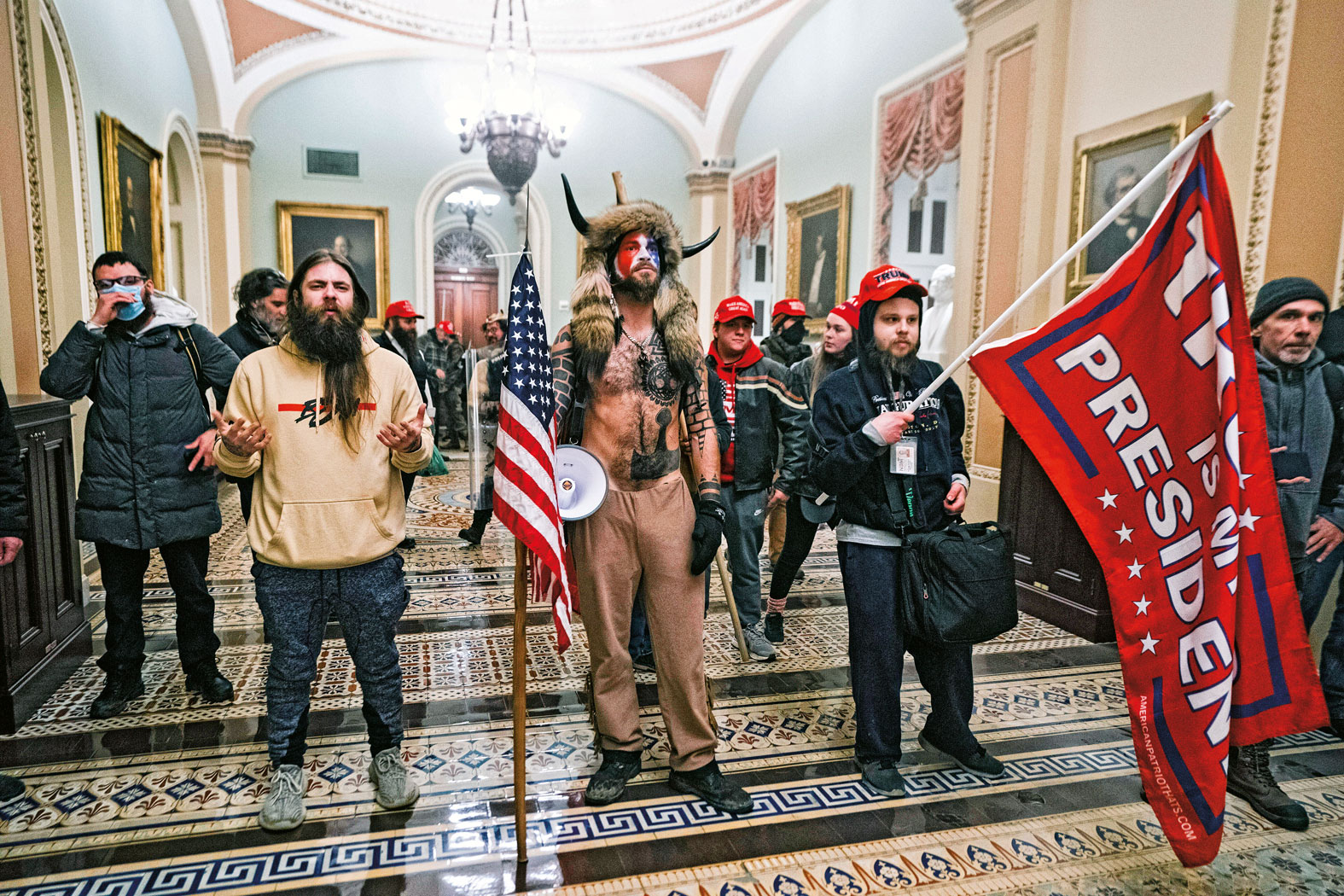 Pierwsze opublikowane zdjęcia przypominały kadry z jakiegoś postapokaliptycznego filmu. 6 stycznia ujrzeliśmy wnętrza amerykańskiego Kongresu, emanację pompy imperialnej władzy, gdzie w mahoniowych, obitych skórą fotelach nie siedzieli tym razem dżentelmeni w garniturach, tylko pstrokato ubrani młodzi osobnicy w tatuażach, z plecakami o podejrzanej zawartości. W biurze przewodniczącej Izby Reprezentantów Nancy Pelosi mężczyzna w dżinsach i baseballowej czapce zostawił liścik: „Byłem tu, suko”. W hallu udekorowanym portretami narodowych bohaterów brodacz w kolorowej czapie z pomponem niósł z triumfem ukradzioną ozdobną mównicę. W tłumie plądrujących wyróżniał się zarośnięty przebieraniec w futrach i hełmie z rogami na głowie.