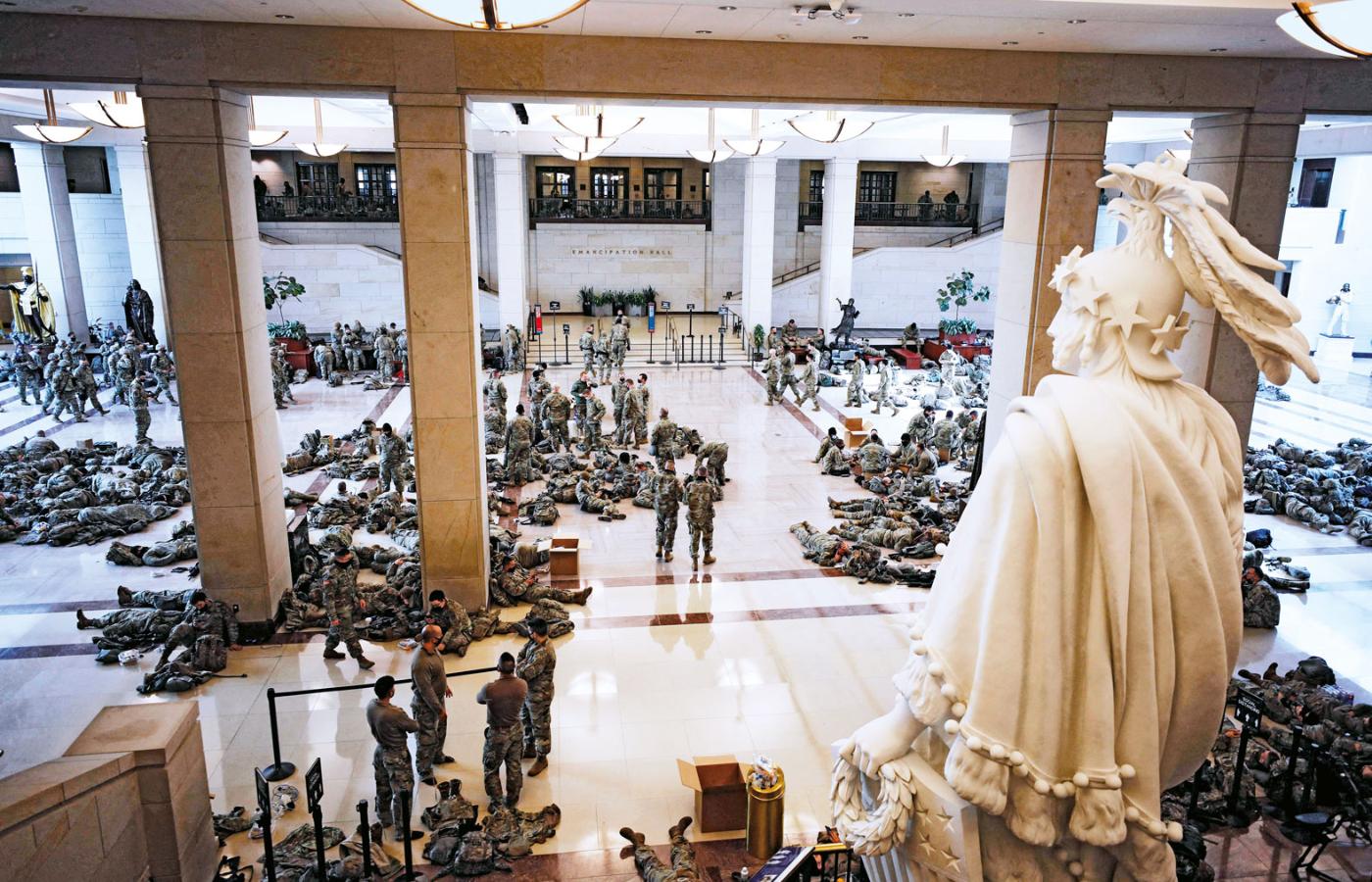 Jakby jednego narodowego koszmaru było mało, dokładnie dwa tygodnie przed inauguracją zdarzył się drugi, który zostanie zapamiętany na długo. Tłum zwolenników Donalda Trumpa na Kapitolu; kongresmeni, którzy zebrali się, żeby zatwierdzić zwycięstwo Bidena, w pośpiechu ewakuowani do podziemi; niektórzy na serio obawiali się, że nie dożyją następnego dnia. W potyczkach policji z demonstrantami zginęło pięć osób, w tym policjant. Komentatorzy lamentowali, że takich intruzów w Kapitolu nie było od 1814 r., kiedy go zdobyli – i puścili z dymem – brytyjscy żołnierze (piszemy o tym incydencie historii na s. 62).