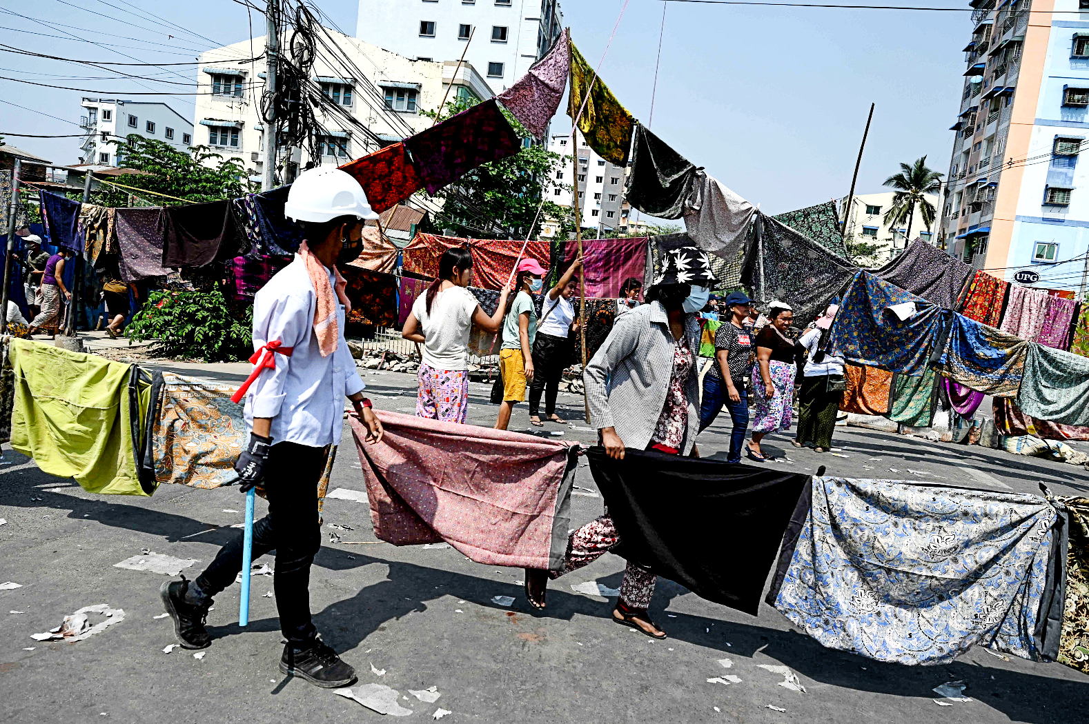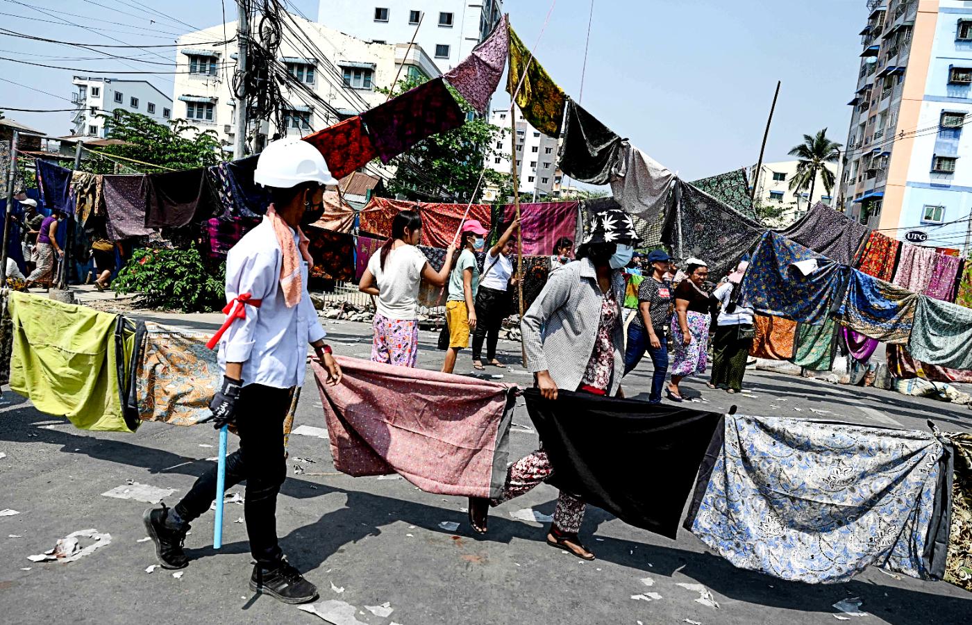 Na pierwszy rzut oka ulice w Mjanmie mogą przypominać śródziemnomorskie zaułki, gdzie na sznurkach rozciągniętych między domami suszy się pranie. Od kilku dni nad głównymi arteriami nie tylko w Rangunie czy Mandalay, ale i w dziesiątkach mniejszych miast powiewają barwne tradycyjne spódnice htamein. To jedna z form protestu przeciwko władzy wojskowych, którzy 1 lutego obalili demokratycznie wybrany rząd Narodowej Ligi Demokracji (NLD) i od tego czasu próbują nieskutecznie i dość nieudolnie podporządkować sobie kraj.