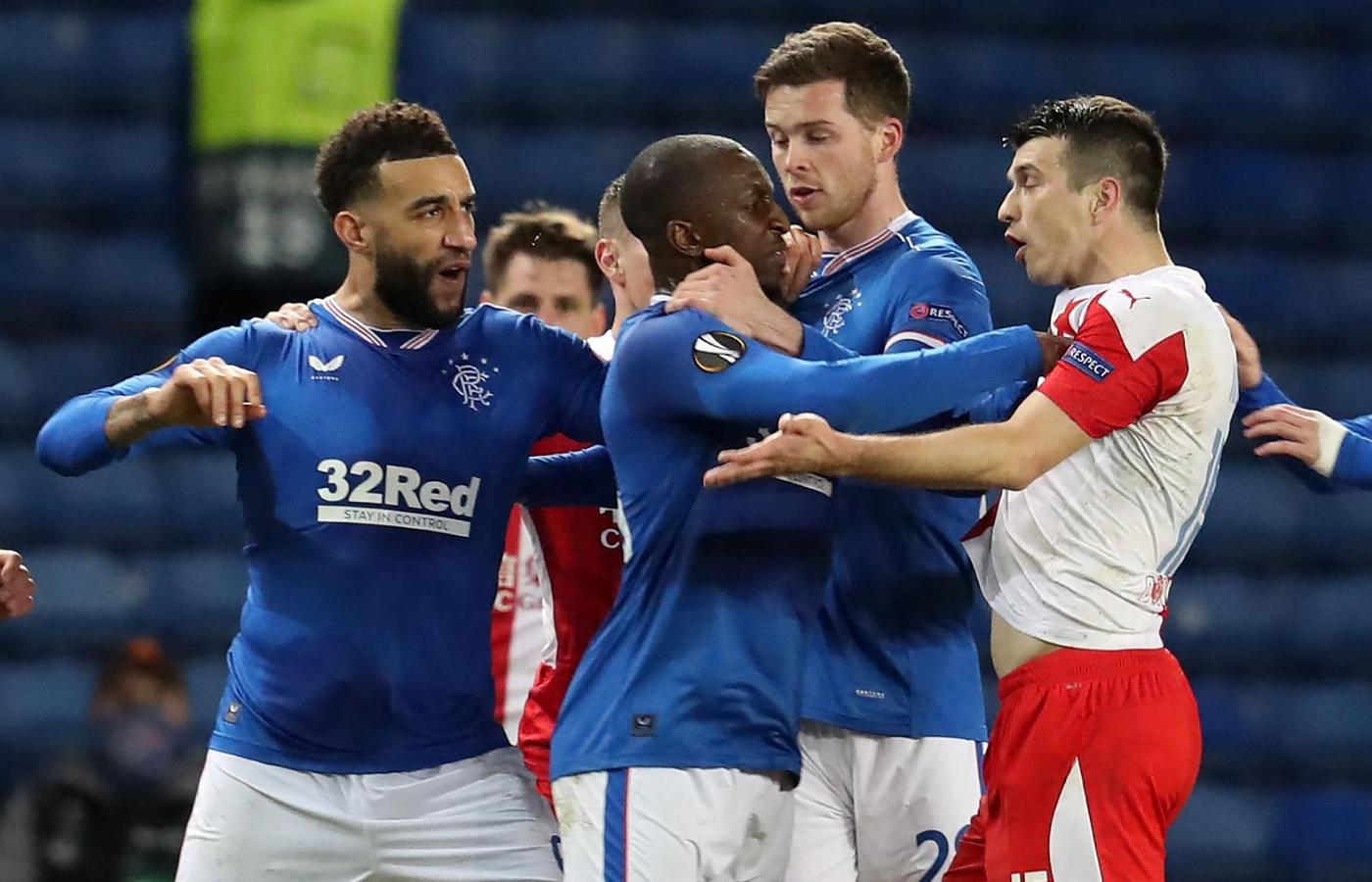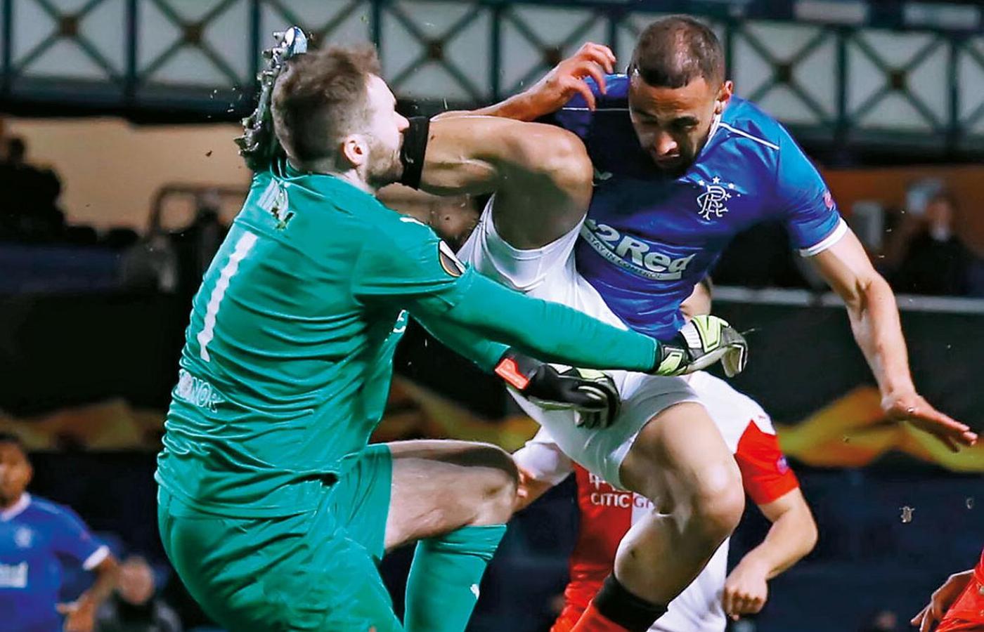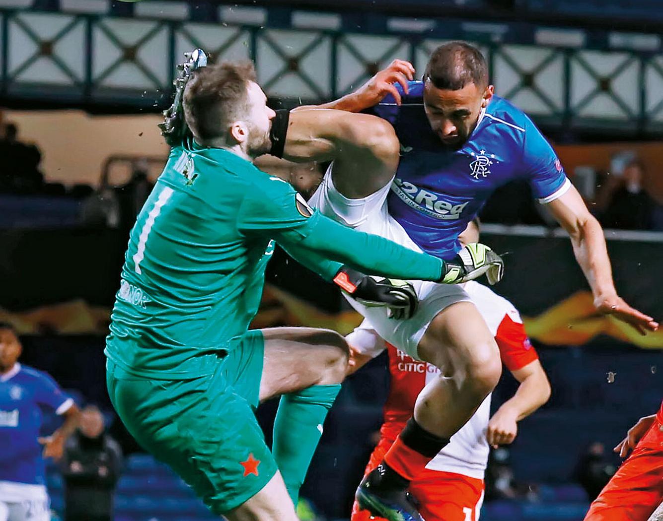 17 marca Slavia Praga grała w Glasgow z tamtejszym klubem Rangers. Czesi nie byli faworytem, a mimo to wygrali i awansowali do ćwierćfinału Ligi Europy. W drugiej połowie przegrywający Rangersi popisywali się na boisku wyjątkową brutalnością. Kopniętego w twarz czeskiego bramkarza karetka zabrała do szpitala, gdzie okazało się, że ma pękniętą czaszkę. W czasie meczu w zasadzie bez przerwy wybuchały kłótnie i przepychanki między piłkarzami.