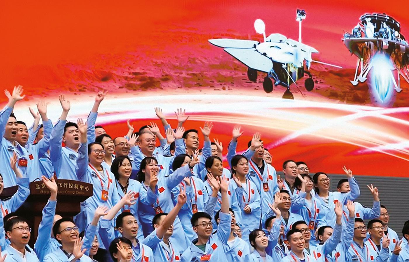 Ledwie trzy miesiące po podobnym osiągnięciu Amerykanów chińska misja bezzałogowa wylądowała na Marsie. Sonda Tiawen-1 wyruszyła z wyspy Hajnan w lipcu 2020 r., w lutym weszła na orbitę Marsa, teraz lądownik z łazikiem Zhurong osiadł na wielkim płaskowyżu Utopia Planita (gdzie w 1976 r. wylądował amerykański Viking-2, a w lutym łazik Perseverance). Zhurong to starochińskie bóstwo ognia, nazwa została wybrana w internetowym plebiscycie (a sam Mars nazywa się po chińsku Huoxing, czyli Planeta Ognia). Sześciokołowy ognisty łazik, ważący 240 kg, który przez trzy miesiące ma zbierać dane i badać próbki, dosyć przypomina amerykańskiego kolegę Opportunity. Mars ma opinię pechowej planety, wiele wcześniejszych podobnych prób, amerykańskich, radzieckich i europejskich, nie powiodło się, nie udała się też wspólna chińska misja z Rosjanami w 2011 r. Teraz Pekin sam za pierwszym razem osiągnął wszystko, co zamierzał, potwierdzając dojrzałość technologiczną i zapewniając sobie, razem z Amerykanami, miejsce w elitarnym marsjańskim klubie łazików.