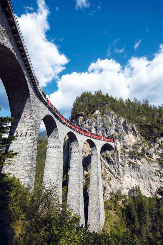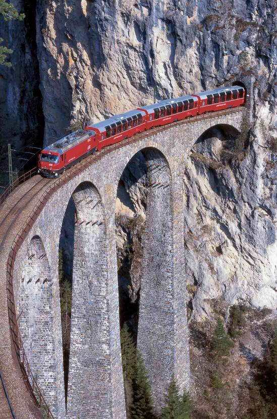 Wiadukt koło Filisur, o wysokości 65 metrów i długości 136 metrów, prowadzi nad doliną rzeki Landwasser, bezpośrednio do tunelu górskiego. Konstrukcja trzech głównych filarów wykonana w latach 1901-1902 do dziś uchodzi za prawdziwy cud techniki. Wiadukt został wybudowany za pomocą dwóch dźwigów, bez użycia rusztowania. Ten najbardziej spektakularny symbol Kolei Retyckich jest znany na całym świecie. Jazda po łuku zachęca do robienia niezapomnianych fotografii.