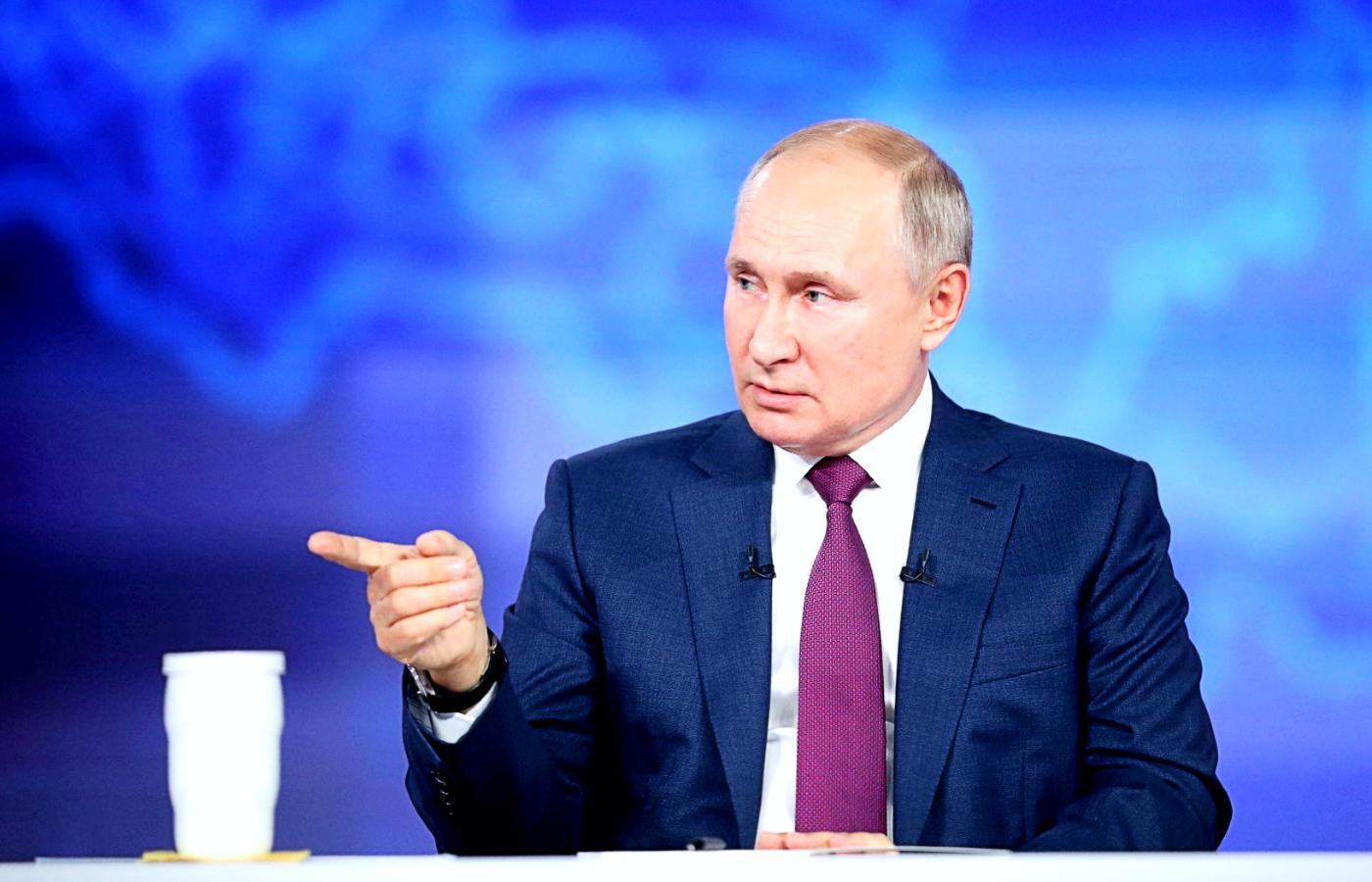 Na pierwszy ogień poszła Ukraina. „Dlaczego nie ma jej na liście wrogich państw?” – ktoś zapytał. Bo Ukraińcy nie są wrogami, odparł prezydent, są częścią wielkiego ruskiego narodu. Obiecał artykuł, w którym wytłumaczy, dlaczego są jednością. Przypomniał, że jedni i drudzy w przeszłości padali ofiarami imperializmów i podał przykład Polski, która chciała Ukrainę podbić. Innymi słowy: to nie Ukraińcy są źli, lecz ich rządzący. „Zełenski oddał pełnię władzy. Decyzje zapadają w Waszyngtonie, częściowo w Berlinie i Paryżu” – mówił, wyjaśniając, dlaczego nie chce się spotkać z prezydentem Ukrainy. Przekaz jest prosty: Kreml odda przysługę Ukraińcom, usuwając szkodliwy dla nich rząd i przywracając stary porządek, ideę „jednego wielkiego narodu”. Na granicy rosyjsko-ukraińskiej należy się więc spodziewać co najmniej kolejnych eskalacji.
