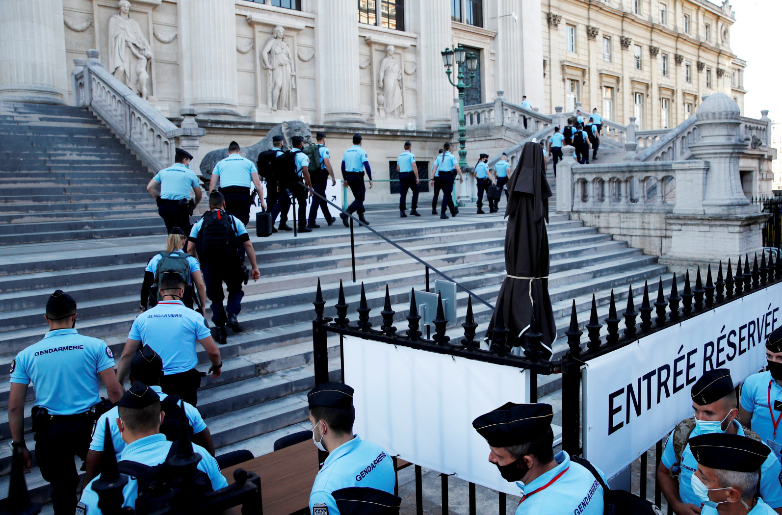 Proces odbywa się przed sądem całkowicie złożonym z sędziów zawodowych. Nie ryzykowano tym razem sądu wspieranego przez przysięgłych, to jest obywateli wybranych w losowaniu. Władze sądowe uznały, że tym razem ryzyko dla zwykłych obywateli jest za duże, gdyż być może działają ciągle we Francji sympatycy fundamentalistów, którzy chcieliby takie wylosowane osoby zastraszyć bądź mścić się już po wyroku.
