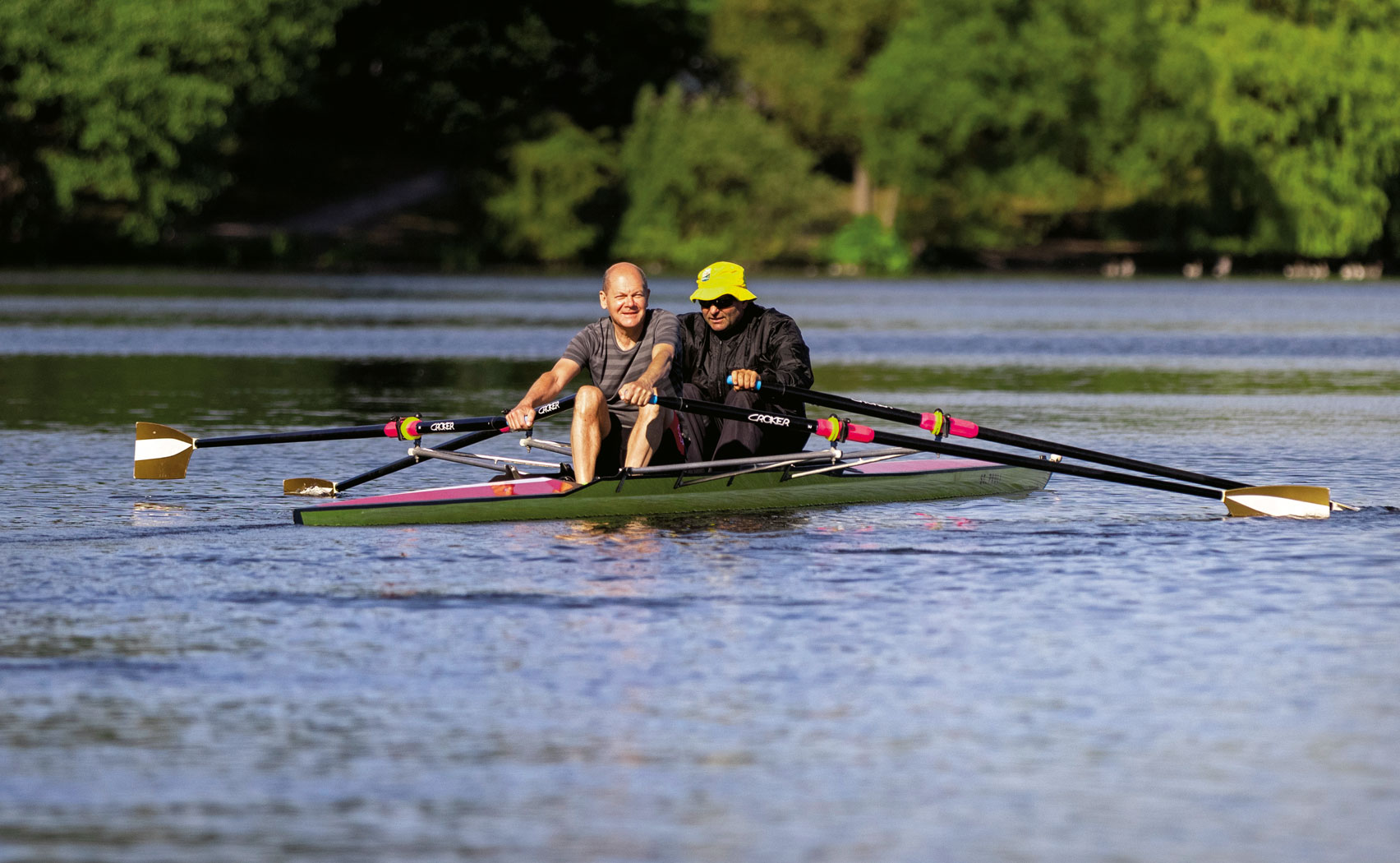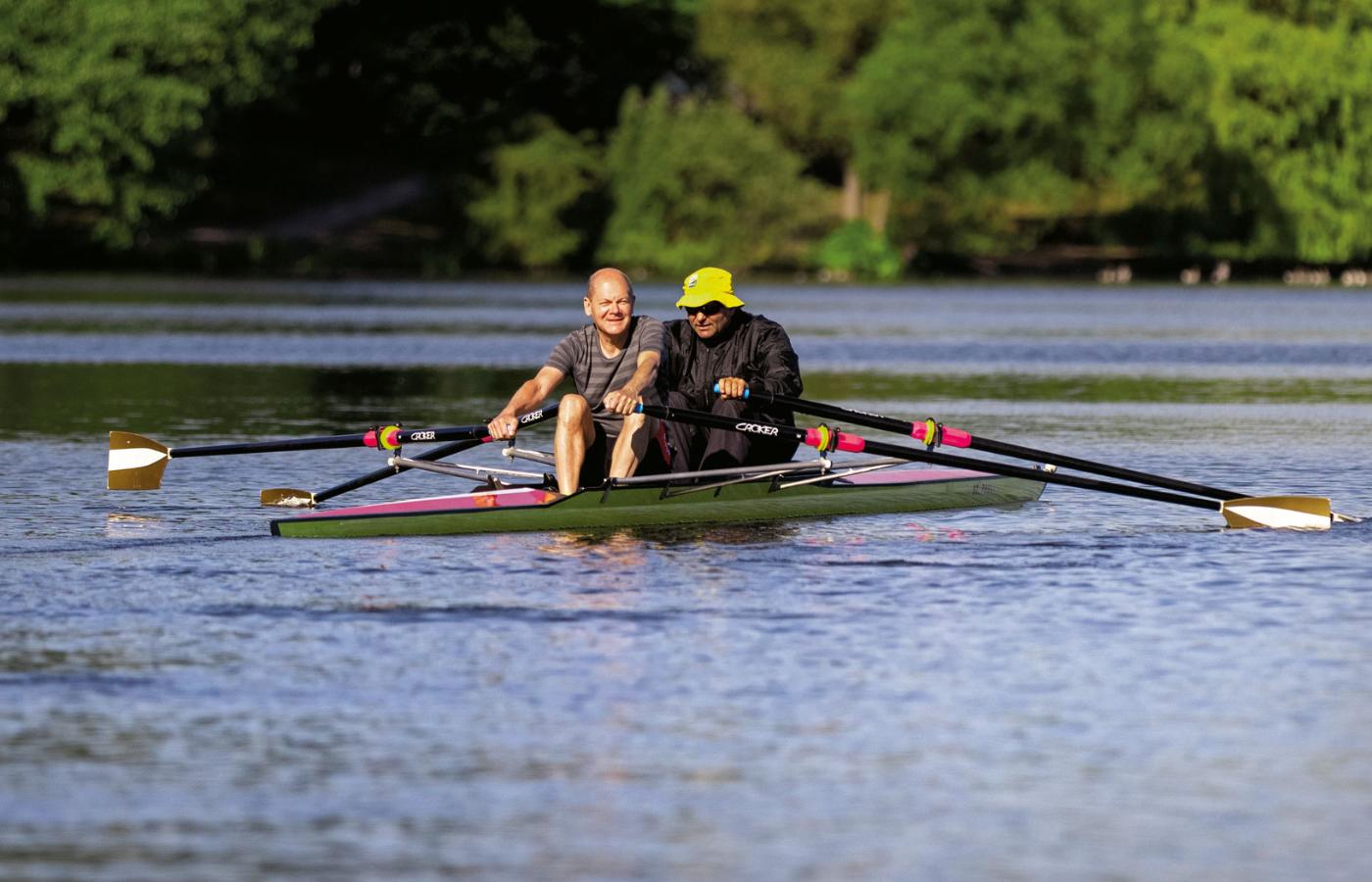 Nad Hamburgiem świeci słońce. W Alsterze, prawym dopływie Łaby, tafla wody jest spokojna i tylko przepływająca łódź wywołuje niewielkie fale. Na pierwszym planie dziarsko wiosłuje 63-letni Olaf Scholz, wicekanclerz i minister finansów w rządzie Angeli Merkel. Odkąd ponad rok temu ogłosił, że powalczy o zwalniane przez nią miejsce, ma zdecydowanie mniej czasu na swoje hobby. Czego się jednak nie robi dla ekipy filmowej!