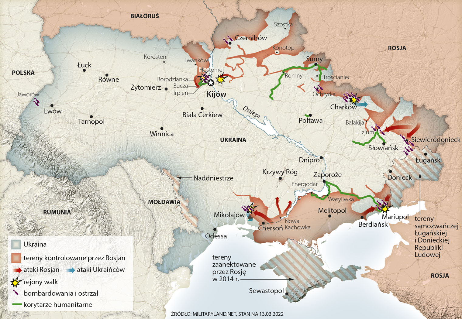 Już kilkanaście dni Rosjanie drepczą w miejscu pod Borodzianką i Buczą po zachodniej stronie Kijowa, pod Browarami po wschodniej stronie ukraińskiej stolicy, po bokach Charkowa i na południe od Zaporoża. Także Mikołajów okazał się być przeszkodą nie do pokonania na drodze do Odessy, zaś Mariupol, Sumy i Czernihów pozostają na rosyjskich tyłach jak drzazga pod paznokciem.