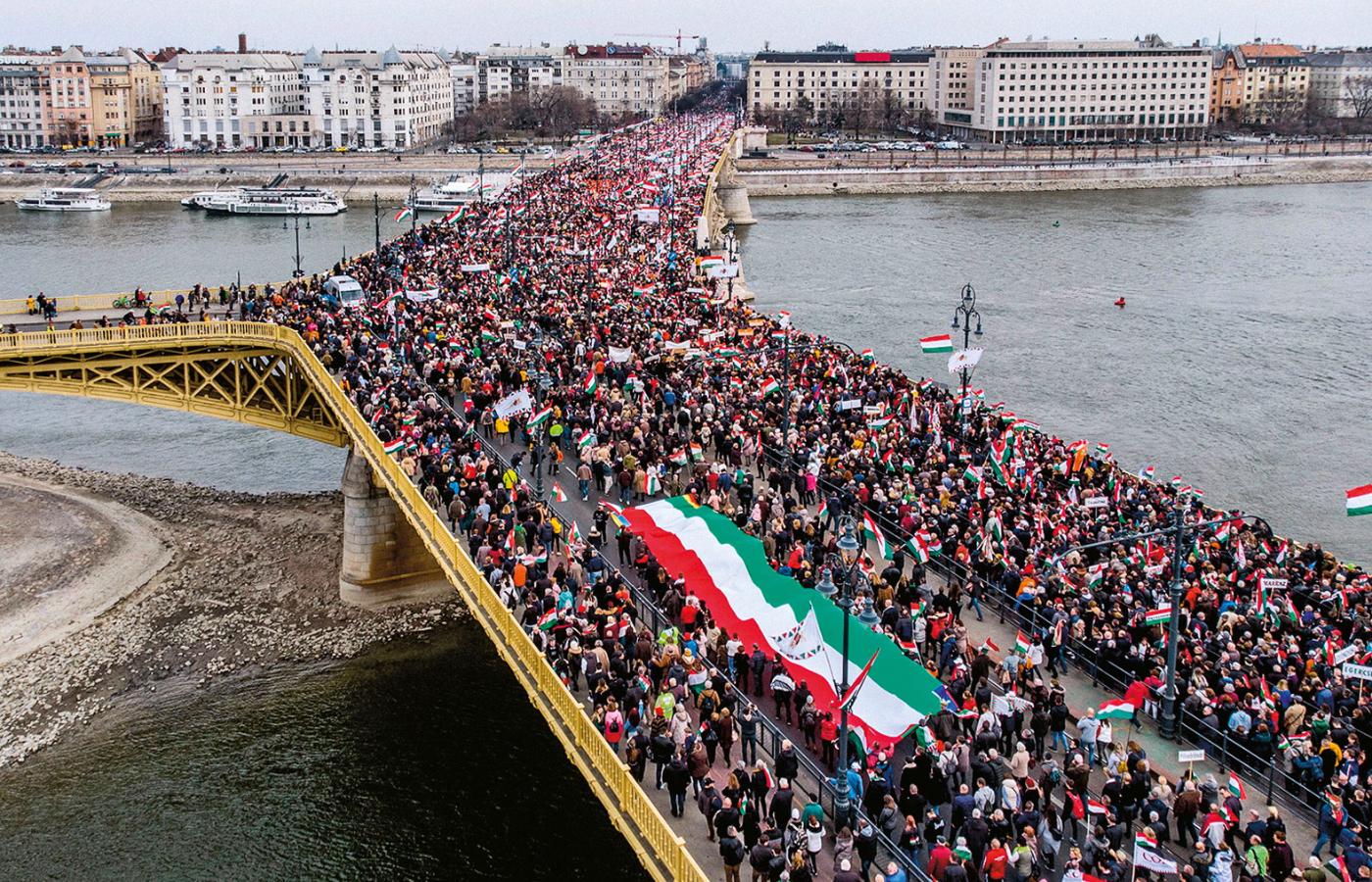 Fraza o młocie i kowadle dobrze oddaje strategię, jaką wybrał Orbán. Twierdzi, że popiera starania Ukrainy o wejście do Unii, ale nie zgadza się na tranzyt broni przez terytorium Węgier. Sprzeciwia się dodatkowym siłom NATO, a następnego dnia wydaje dekret o rozmieszczeniu ich w zachodnich regionach kraju. Podpisuje się pod każdą sankcją Zachodu na Rosję, a media bliskie Fideszowi szerzą rosyjską propagandę na temat wojny. To ulubiona strategia Orbána, nazwana przez niego „tańcem pawia”, czyli manewrowaniem między pozornie niedającymi się pogodzić stanowiskami. Przed wyborami chce zadowolić każdego. Czy strategia okaże się skuteczna? Według przeprowadzonych niedawno dwóch sondaży Instytutu IDEA na Fidesz chciałoby zagłosować 40 proc. Węgrów, a na zjednoczoną opozycję 37 proc.