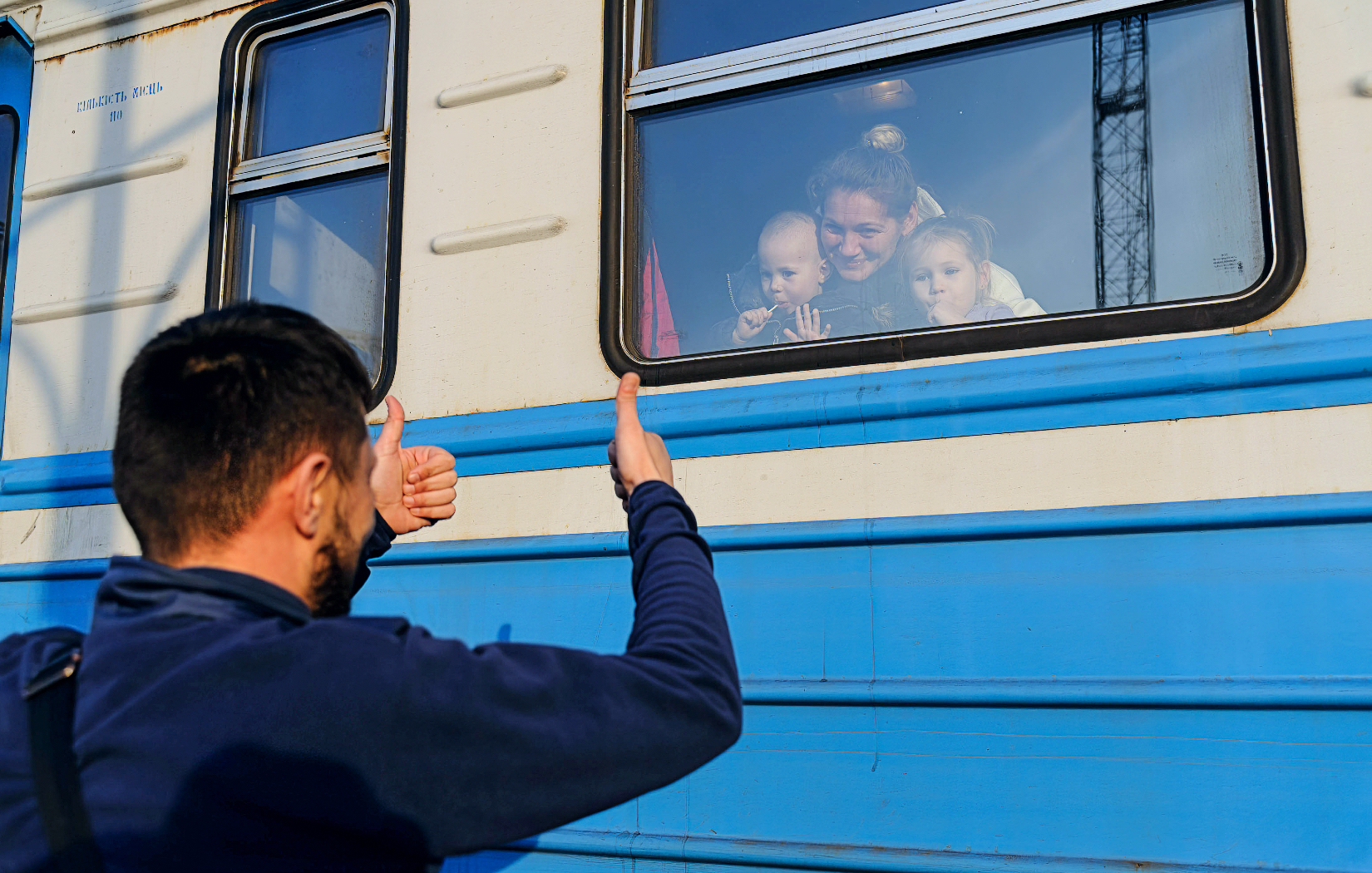Pracuje ukraińska kolej, organizując transporty ewakuacyjne, którymi przewieziono już ok. 3 mln osób. Równolegle działają połączenia kursowe, na które można kupować bilety przez internet lub czatboty takich aplikacji komunikacyjnych jak Telegram. Jak napisał znany pisarz Andrij Kurkow, który pojechał na Zakarpacie: pociągi jeżdżą, zazwyczaj punktualnie, o ile po drodze nie ma bombardowania lub godziny policyjnej. Ta różnica, że w sypialnych nie wydaje się pościeli, ale herbata ciągle po 10 hrywien, pisze Kurkow na Facebooku. Osobiście sprawdziłem, że gdybym chciał dziś pojechać ze Lwowa do Kijowa, bez problemu kupiłbym bilet za 420 hrywien.