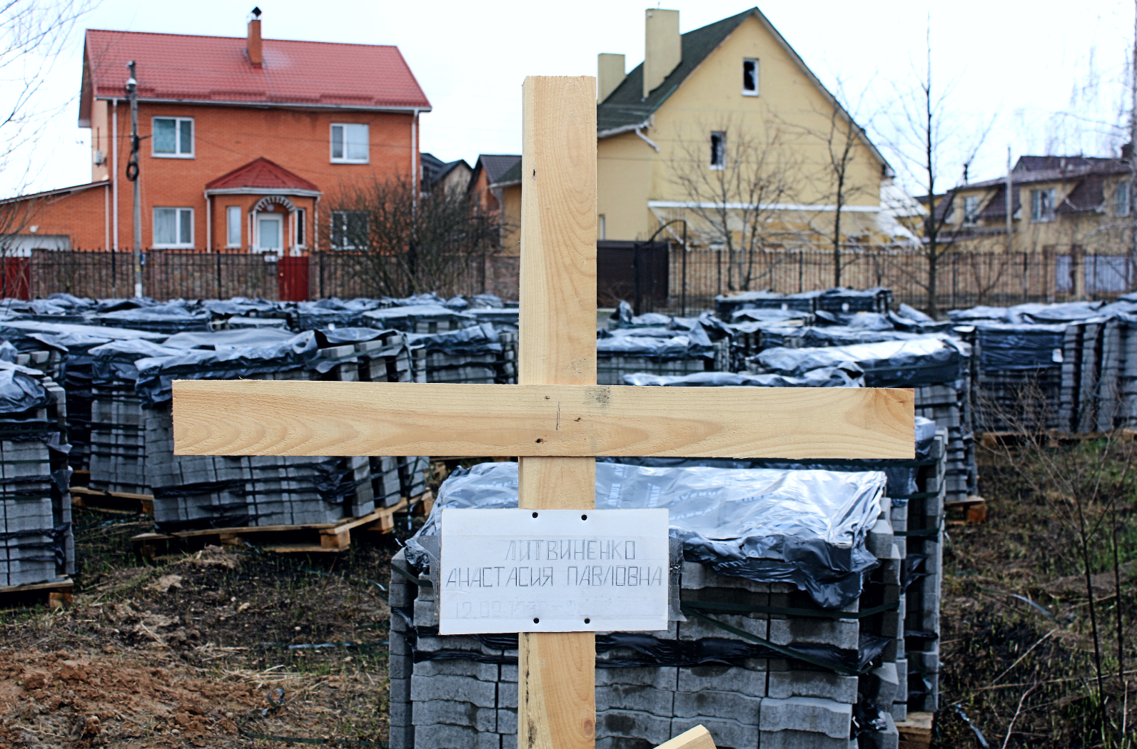 – Proszę spojrzeć. Tam mogiła. Pochowane trzy osoby. Tu, gdzie wbite w ziemię patyki. I tutaj jeszcze jeden trup. Przy wejściu do piwnicy. Jeszcze nikt go nie zabrał – opowiada Petro Porostyna, kijowian. Do Buczy przyjechał na początku wojny, myślał, że będzie bezpieczniej.
