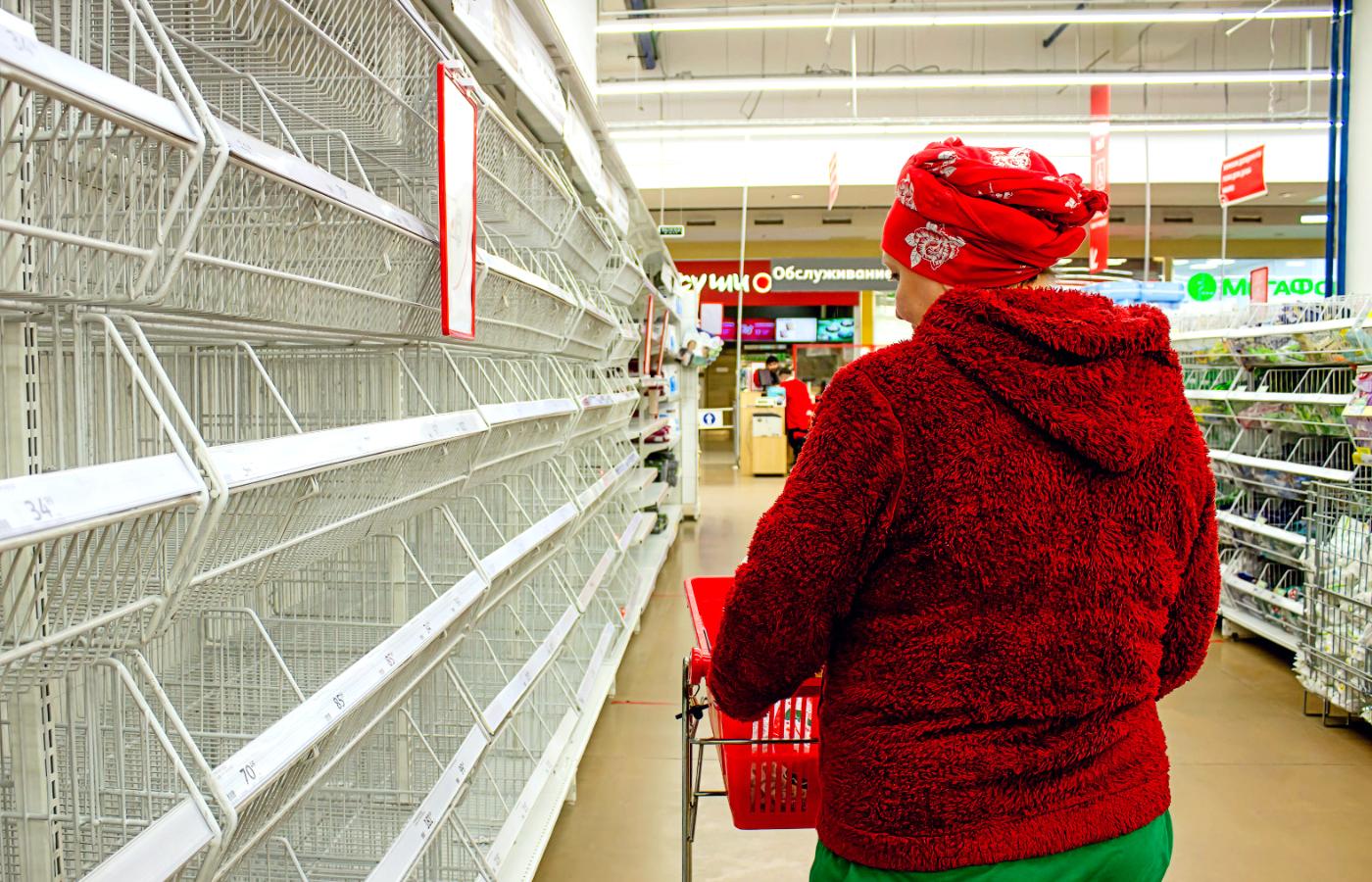Strach był pierwszą reakcją na sankcje i wyprowadzkę zachodnich marek z Rosji – ludzie rzucili się do sklepów, by zrobić zapasy podstawowych produktów. Ci, których było stać, kupowali również meble z Ikei, iPhone′y i ubrania ulubionych marek, zanim zniknęły. Pustoszały półki i galerie, wróciły kolejki, a z nimi przepychanki i awantury.