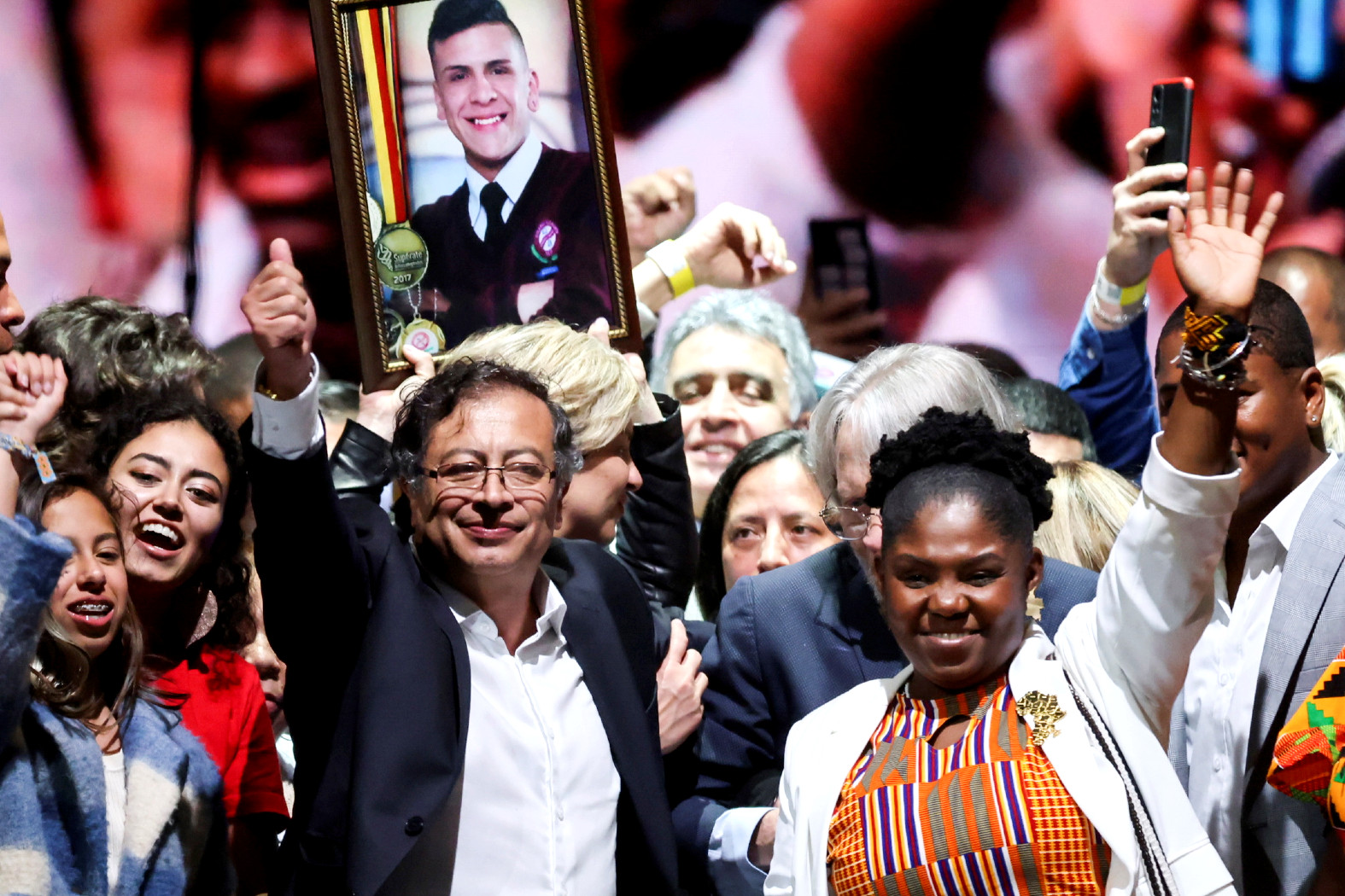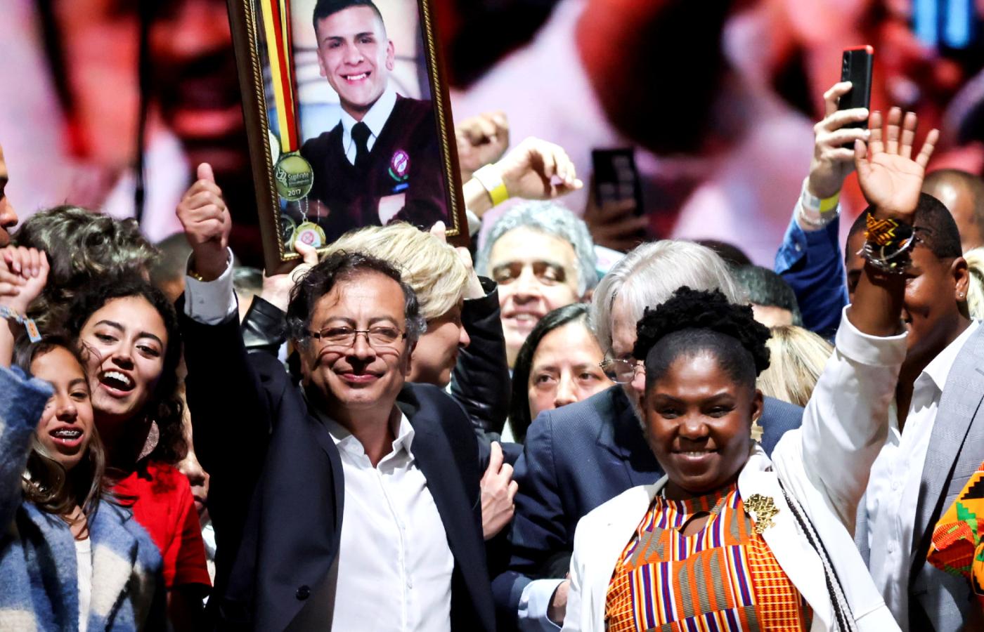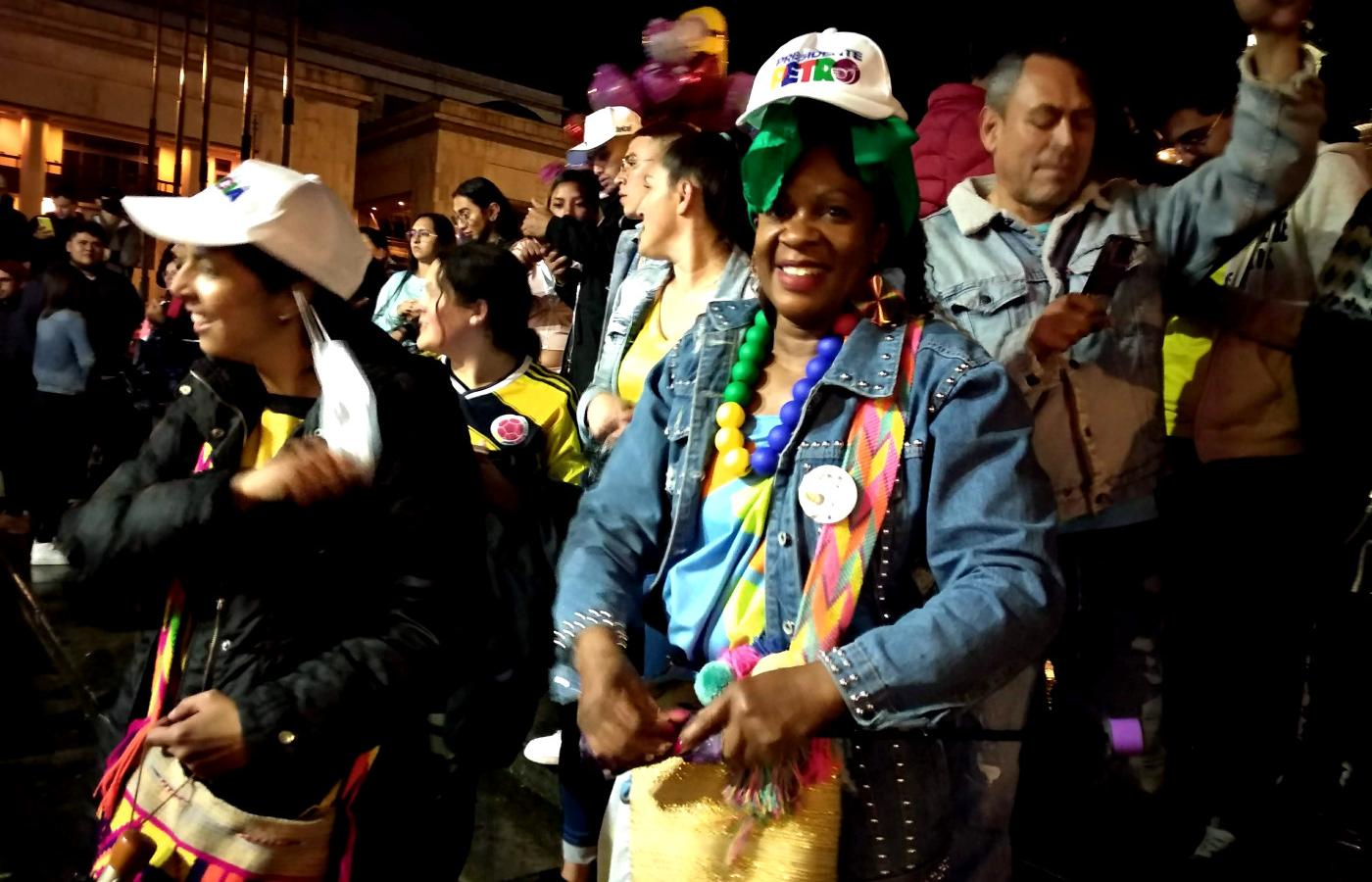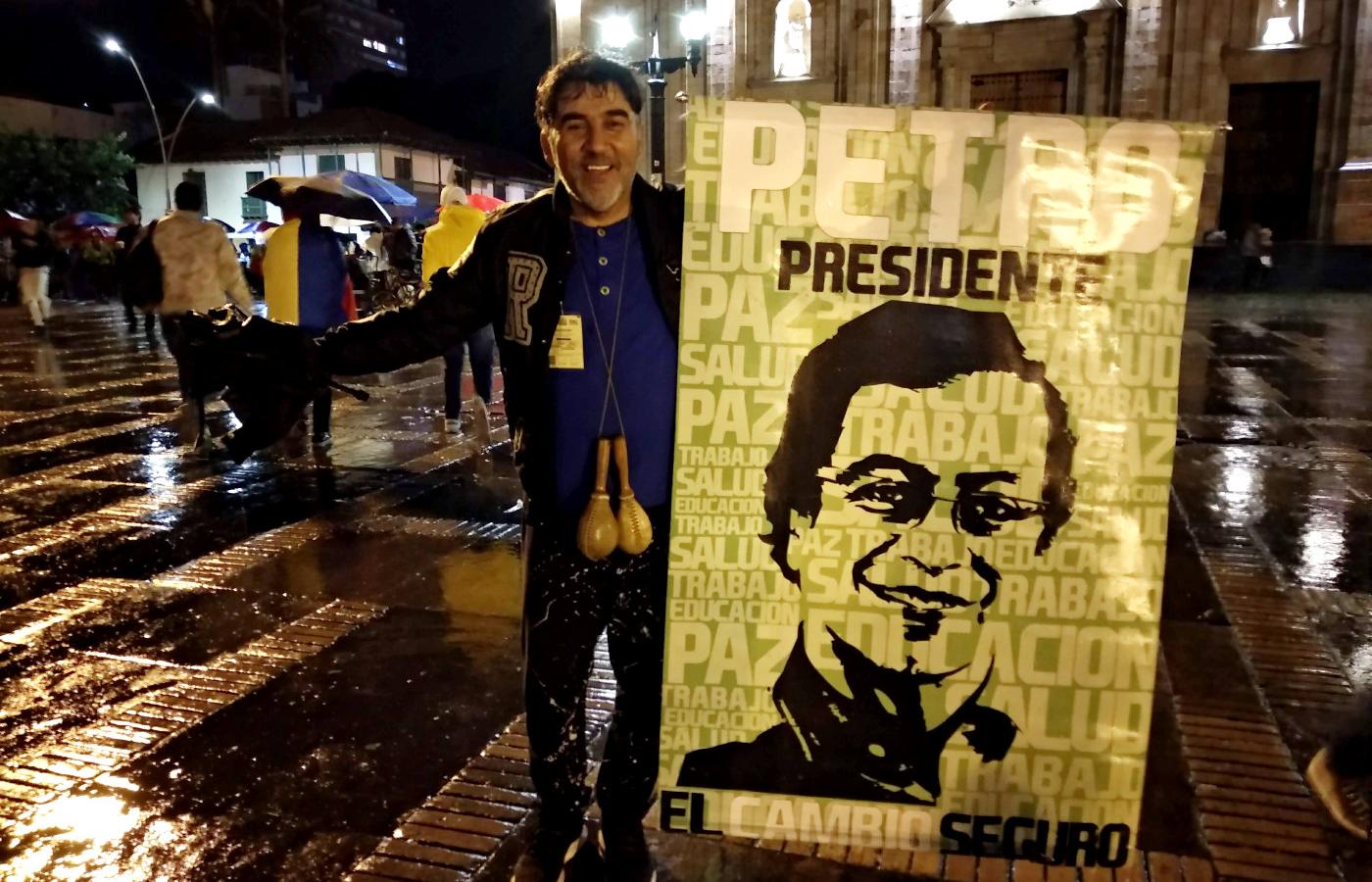 Gdy godzinę po zamknięciu urn okazało się, że Petro wygrał drugą turę wyborów prezydenckich, zdobywając nieco ponad 50 proc. głosów, na niebie nad Bogotą rozbłysły kolorowe sztuczne ognie. Towarzyszyły im race na wiwat. Mimo ulewy ludzie zaczęli wychodzić z domów i w rytm dźwięków klaksonów samochodowych i popularnych gwizdków zbierać się na centralnym placu Boliwara i pobliskich ulicach. Rozentuzjazmowani sympatycy nowego prezydenta tańczyli, skandowali, wymachiwali flagami Kolumbii i śpiewali. Słychać było znaną włoską piosenkę antyfaszystowską „Bella ciao”, najsłynniejszą w regionie pieśń ruchów ludowych „El pueblo unido jamas sera vencido” (napisaną i skomponowaną w Chile za rządów Salvadora Allende), a także hymn Kolumbii.