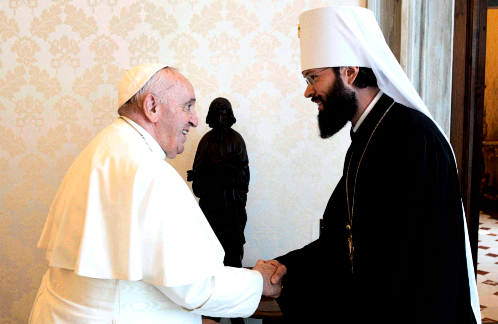 Komunikat o piątkowym spotkaniu na stronie Vatican News informuje o nim zdawkowo. Celu, a tym bardziej treści rozmowy nie podaje. Przypomina za to, że 16 marca Franciszek miał telekonferencję z Cyrylem, obok którego siedział wówczas abp Hilarion, i że 25 kwietnia papież przesłał patriarsze moskiewskiemu życzenia w związku z prawosławnymi świętami Wielkiej Nocy.