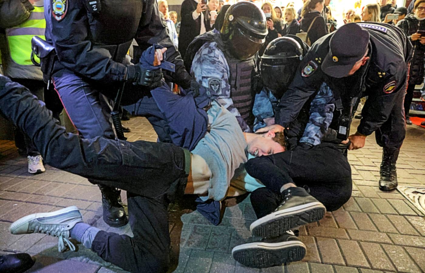 Rosja Władimira Putina militarnie przegrywa barbarzyńską wojnę, którą wywołała, najeżdżając Ukrainę. W ponad 30 miastach w całym kraju odbywały się w środę wieczorem demonstracje przeciwko rosyjskiej agresji oraz ogłoszonej w orędziu przez Putina częściowej mobilizacji. Jej skutkiem ma być powołanie do armii ok. 300 tys. żołnierzy.