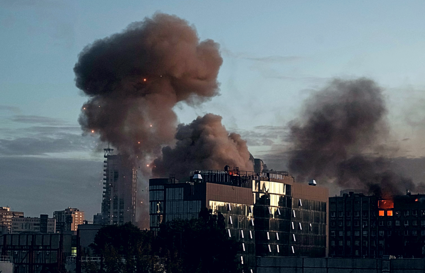 W poniedziałek wieczorem prezydent Wołodymyr Zełenski poinformował, że w ciągu 12 godz. (od godz. 21 w niedzielę) siły ukraińskie zniszczyły 37 wystrzelonych przez Rosjan irańskich dronów Shahed i kilka pocisków samomanewrujących. Wcześniej tego dnia doszło do trzech wybuchów, po których władze poinformowały, iż stolica Ukrainy była obiektem ataku z użyciem dronów kamikadze. W wyniku tego pierwszego ataku w centrum miasta wybuchł pożar w budynku, który nie jest obiektem mieszkalnym, a kilka budynków mieszkalnych zostało uszkodzonych.