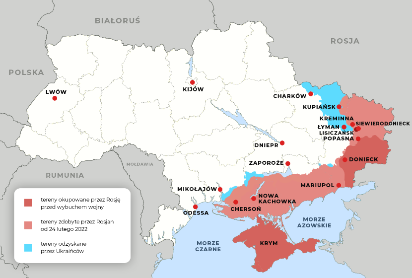 Pod Chersoniem ukraińskie wojska atakowały w kierunku Miłowe, Suchanowe i Bruskynśke, czyli w kierunku Berysławia od strony północno-wschodniej, północnej i północno-zachodniej. Atakowano też w kierunku miejscowości Zeleny Hai, czyli w kierunku Chersonia. Bardzo silnych ataków dokonała natomiast ukraińska artyleria, która w ponad 180 misjach ogniowych skierowanych na konkretne cele zadała Rosjanom poważne straty. Sztab Generalny Ukrainy podaje, że za ostatnią dobę wyniosły one: 650 zabitych, 12 czołgów, 16 innych pojazdów pancernych i dwa działa artylerii polowej. Stracono też cztery śmigłowce.