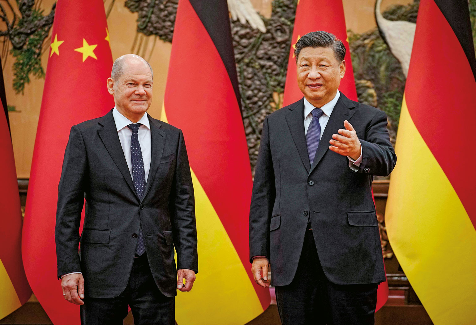W Polsce i w państwach bałtyckich niemiecki kanclerz budzi irytację kluczeniem w sprawie pomocy wojskowej dla Ukrainy. Oskarżany jest wręcz o dążenie do paktu z Władimirem Putinem. Na Scholza obraził się także prezydent Emmanuel Macron, który pod koniec października odwołał – rzecz bez precedensu – francusko-niemieckie konsultacje międzyrządowe. Bodaj największą falę krytyki Niemiec ściągnął jednak na siebie, składając 4 listopada wizytę w Chinach – zaraz po tym, jak tamtejszy przywódca Xi Jinping po raz kolejny dokręcił śrubę autorytaryzmu.
