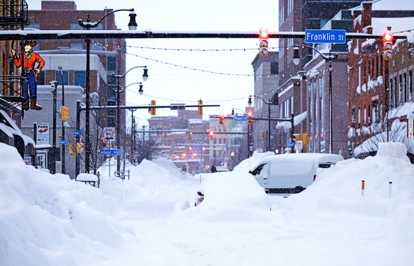 W Buffalo (Nowy Jork) spadło prawie półtora metra śniegu, w wielu miejscach zasypał on samochody, w niektórych znaleziono zamarznięte ciała kierowców. W mieście tym i w całym hrabstwie Erie, w którym jest położone, zanotowano 33 zgony związane ze śnieżycą, a więc około połowy wszystkich przypadków w kraju. Ekipy ratunkowe w Buffalo odkopują teraz kolejne zakopane w śniegu samochody, więc liczba ofiar może się okazać większa. Miejscowe władze ostrzegały, żeby nie wychodzić z domu i nie jeździć autami z powodu niebezpiecznych warunków, ale wielu ludzi ryzykowało wyjazd na zakupy żywności i innych niezbędnych artykułów. Przedsiębiorstwa odśnieżania dróg nie nadążają z usuwaniem śniegu, a często ciężarówki z pługami same utykają w zaspach.