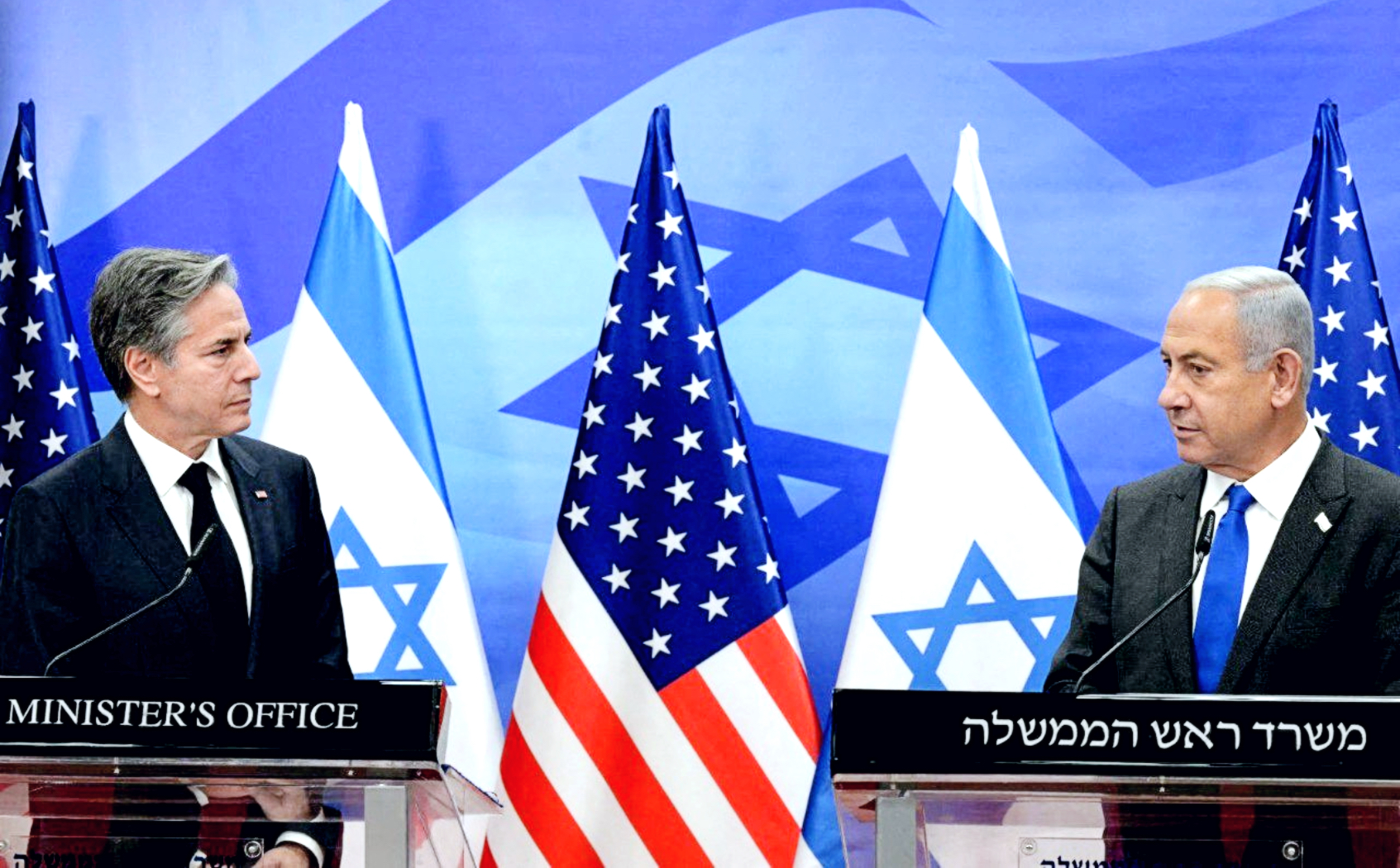 Blinken spotkał się w poniedziałek z Netanjahu i na wspólnej konferencji prasowej potwierdził poparcie USA dla rozwiązania konfliktu z Palestyńczykami w formule „dwóch państw”, czyli powstania niepodległego państwa palestyńskiego obok Izraela. Zaznaczył, że obecny kryzys oddala możliwość takiego rozwiązania, i zaapelował do obu stron, aby „podjęły pilne kroki na rzecz przywrócenia spokoju”. Podkreślił przy tym, że „amerykańskie oddanie sprawie bezpieczeństwa Izraela pozostaje niezachwiane”, i złożył hołd izraelskim ofiarom ataku, który nastąpił po rozpoczęciu szabasu, kiedy synagoga w pobliżu była wypełniona ludźmi.