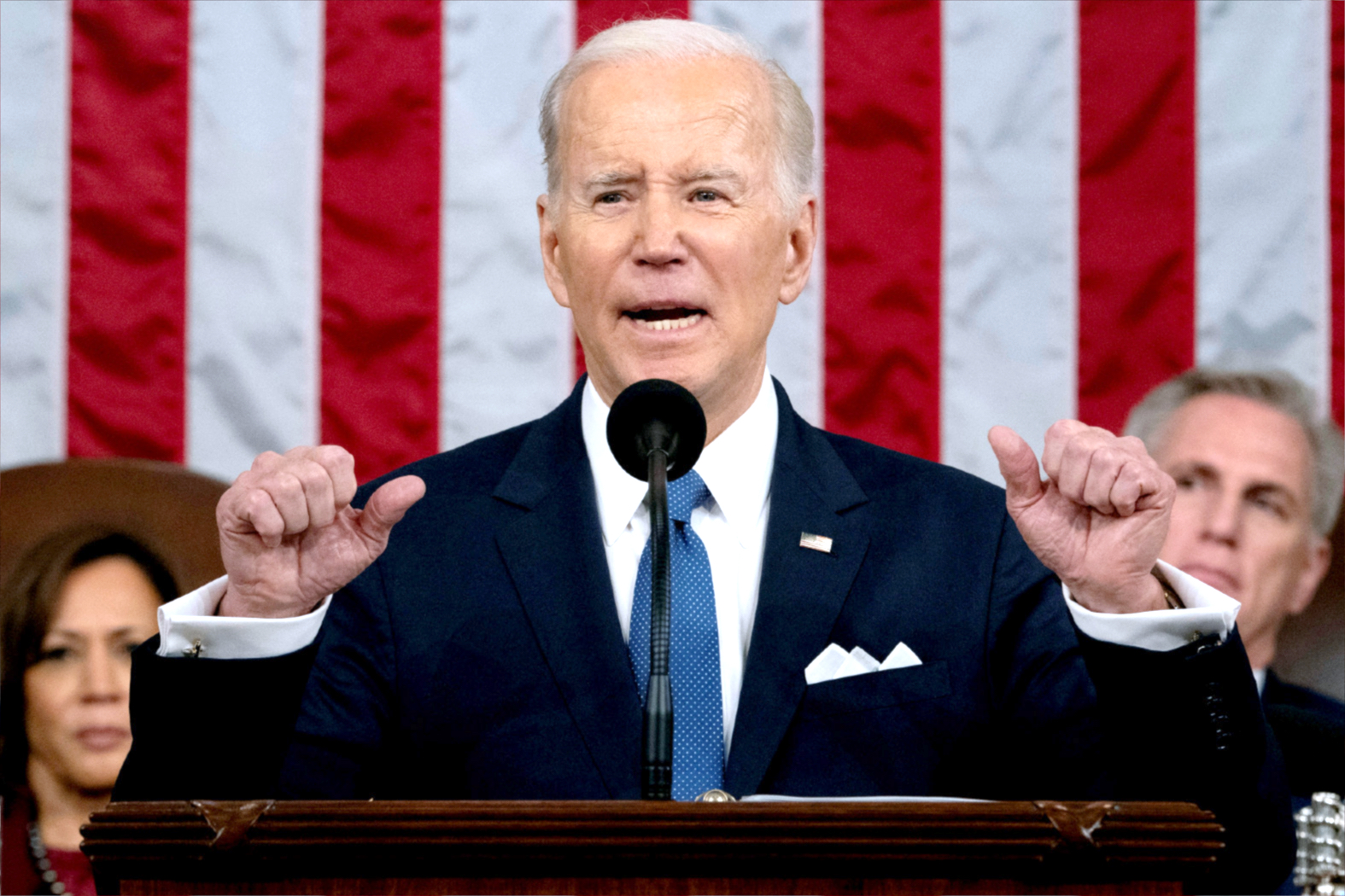 Senatorowie i kongresmeni z GOP przyłączyli się do aplauzu, jakim demokraci nagradzali niektóre fragmenty wystąpienia Bidena, ale większość przemówienia przyjmowali w milczeniu. A gdy opowiedział, że „niektórzy republikanie” zamierzają obciąć wydatki na Medicare, czyli fundusz ubezpieczeń zdrowotnych dla emerytów, oraz na Social Security, czyli federalne emerytury, z ław opozycji rozległo się głośne buczenie i okrzyki: „Kłamca!”. Protestowali posłowie z frakcji ultrakonserwatywnych republikanów, którzy domagają się, aby koniecznemu wkrótce ustawowemu podniesieniu limitu zadłużenia USA towarzyszyły drastyczne cięcia wydatków.