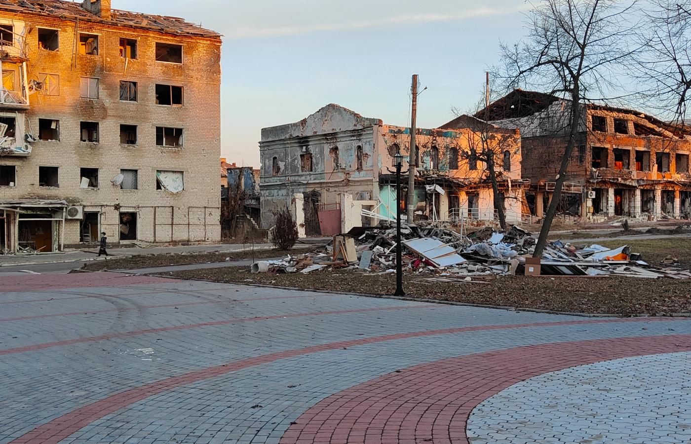 Nowa płytka w niektórych miejscach się zachowała, ale fontanna jest zniszczona. Po obu stronach głównej ulicy miasta Sobornej krajobraz jak na zdjęciach po powstaniu warszawskim – trudno znaleźć cały dom czy niewypaloną kamienicę. Niektóre budynki nie mają dachów, inne dostały niżej. Tam, gdzie dawniej były okna, teraz straszą osmolone dziury.