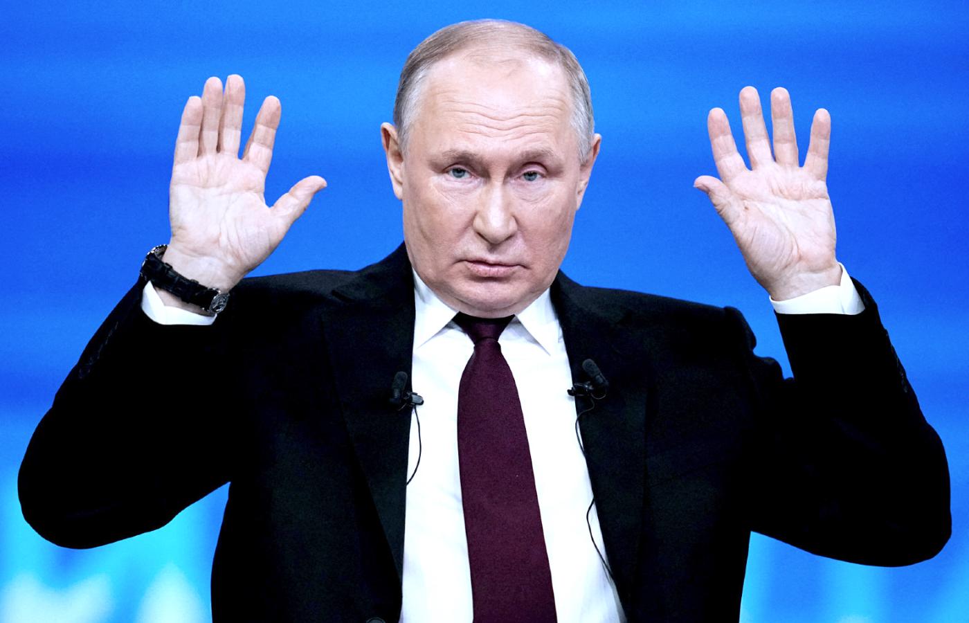 Po raz pierwszy od inwazji na Ukrainę Władimir Putin zdecydował się wziąć udział w wielkiej dorocznej konferencji prasowej. Rok temu odwołał ją, aby uniknąć trudnych pytań. Brakowało wielkich sukcesów, trwały ciężkie walki na kierunku Bachmutu i Awdijiwki, a nieżyjący już Jewgienij Prigożyn, wówczas szef Grupy Wagnera, zapowiadał, że tworzy własną partię polityczną. Dzisiaj sytuacja jest inna. Kontrofensywa ukraińska okazała się porażką, kremlowski sojusznik Viktor Orbán uparcie blokuje rozpoczęcie negocjacji akcesyjnych UE z Ukrainą, a prezydent Ukrainy Wołodymyr Zełenski wrócił z Waszyngtonu bez pieniędzy na pomoc dla armii. Kreml ma poczucie, że wiatr historii wieje w jego żagle.