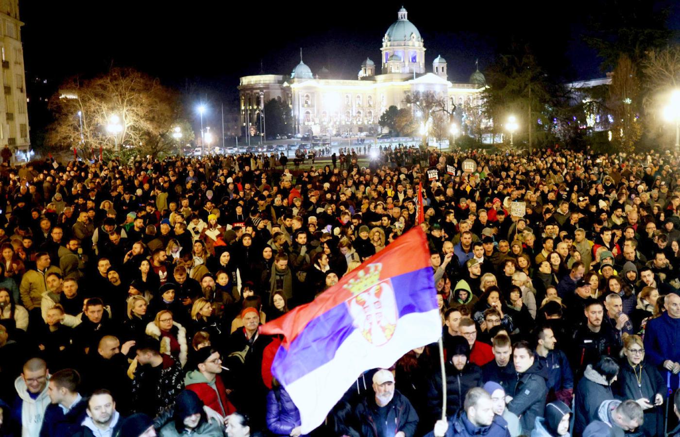 SNS powstała w 2008 r. i rządzi nieprzerwanie od 11 lat, a jej ponowne zwycięstwo wywołało masowe protesty na ulicach Belgradu. Zarzuca jej się o klientelizm, korupcję wyborczą, a nawet manipulacje głosami oddanymi na partię prezydenta Aleksandra Vučicia. 38 osób aresztowano – według informacji rzecznika komendy głównej policji Ivicy Ivkovica grożą im poważne oskarżenia, m.in. za „próbę zmiany porządku konstytucyjnego kraju za pomocą przemocy”.