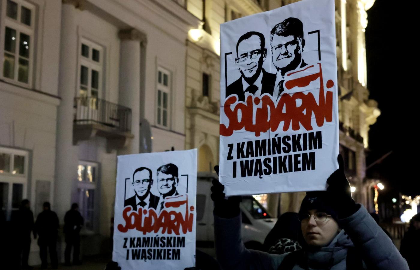 Z kolei niemiecki portal „Deutsche Welle” ilustruje artykuł o aresztowaniu polityków PiS zdjęciami sprzed Pałacu Prezydenckiego w Warszawie, gdzie w obronie Kamińskiego i Wąsika zbierali się sympatycy poprzedniej władzy. W artykule zawarty został również tweet obecnego posła PiS Rafała Bochenka, który wkleił grafikę z napisem „solidarni z Kamińskim i Wąsikiem” – widać na niej wizerunki obu mężczyzn, a hasło napisane jest solidarycą. Serwis podkreśla, jak trudne będzie przywrócenie praworządności w Polsce w obliczu całkowitego braku możliwości współpracy pomiędzy Tuskiem a Dudą. Ten ostatni, zauważa „Deutsche Welle”, pozostał głuchy na apele premiera o „zakończenie tego spektaklu”, przez co kryzys wokół praworządności rozlewa się na inne instytucje i może zagrozić większości parlamentarnej.