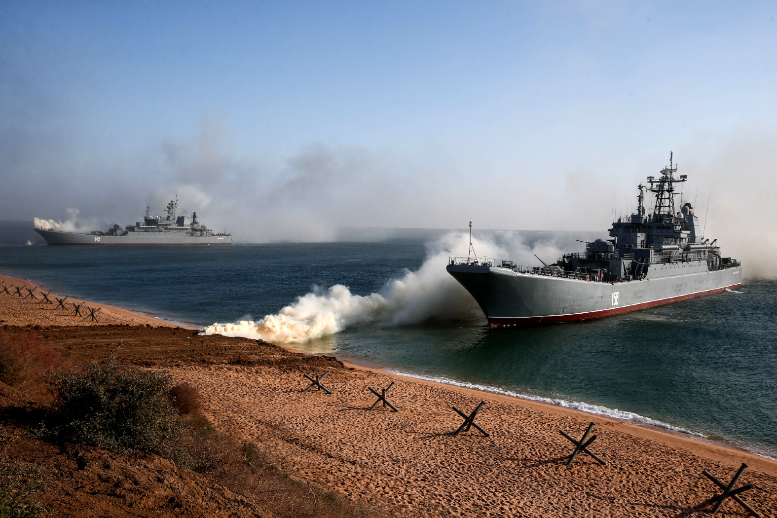 W okręt desantowy „Cezar Kunikow” (BDK-64) kilka dronów morskich typu Magura V5 trafiło w pobliżu miasta Berehowe (między Sewastopolem a Jałtą) w południowej części Krymu. Co tam robił, trudno powiedzieć. Nie ma tu portu, nawet małego, rybackiego, to miasto uzdrowiskowe, podobne do Sopotu. Ze zdjęć opublikowanych przez GUR nie wynika, czy był w ruchu, ale dziób miał zwrócony na zachód, w stronę Sewastopola. Niewykluczone, że płynął pod osłoną nieodległego brzegu, zapewne wypełniony amunicją, bo nastąpiła potężna eksplozja, a rozerwany okręt szybko przewrócił się do góry dnem i zatonął. Nieznany jest los załogi złożonej z 87 osób. Atak wykonano, gdy było jeszcze ciemno, i nie wygląda na to, by usiłowano jakkolwiek mu zapobiec. Do dronów, jak wynika ze zdjęć, nie prowadzono ognia z okrętu.