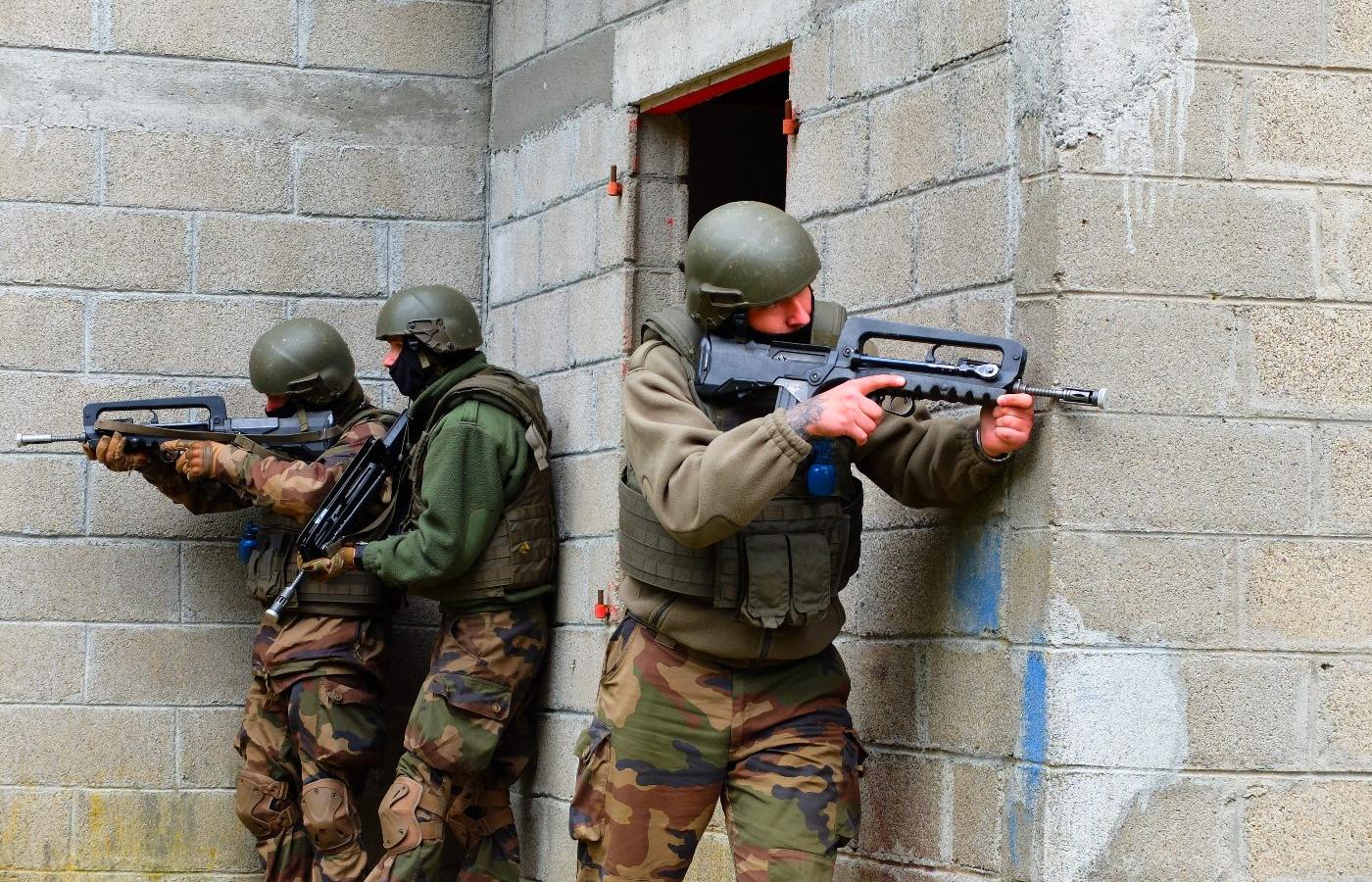 Działania podopiecznych z bliska obserwują francuscy instruktorzy, czasem do zespołów podbiegają tłumacze. To nauka w trybie ciągłym, bo nie wszystko się udaje. „Ofiary” są po obu stronach. W pewnym momencie zażarta walka rozgrywa się między „załogami” dwóch sąsiadujących okno w okno budynków, innym razem z zaciekłością broni się „rosyjska” obsada piekarni. Ukraińcy wyposażeni podobnie jak wcześniej w okopach, ale w rękach mają inne karabiny, starszej wersji FAMAS-y z charakterystycznym uchwytem na górze. Tu też kompaktowość tego karabinu dobrze się sprawdza, chociaż wojskowi wskazują, że jego nietypowy układ utrudnia przekładanie z prawej na lewą stronę, potrzebne w bliskiej walce. Czy to przeszkadza, gdy później w ręce Ukraińców trafi inna broń, np. najbardziej rozpowszechnione wersje kałasznikowa? Podpułkownik z kozacką fryzurą uważa, że wręcz przeciwnie, bo dziś na froncie jest w użyciu różnorodna broń i warto znać wiele jej typów, a i tak najważniejsze są ogólne zasady walki. Zdania są jednak podzielone, bo u żołnierzy wytwarza się tzw. pamięć mięśniowa, związana z konkretną bronią. Za kilka miesięcy odruchów wyrobionych z FAMAS-em będzie się trzeba uczyć na nowo, z innym karabinem w rękach.