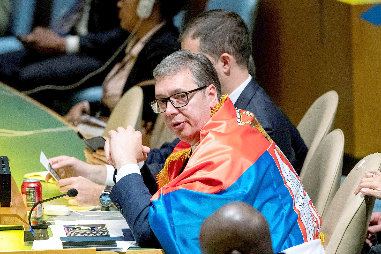 Prezydent Serbii Aleksandar Vuczić podczas sesji Zgromadzenia Ogólnego ONZ Prezydent Serbii Aleksandar Vuczić podczas sesji Zgromadzenia Ogólnego ONZ Eduardo Munoz / Reuters / Forum