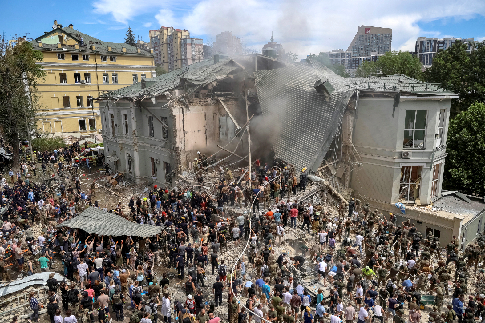 W poniedziałek rano Rosjanie przeprowadzili zmasowany atak na miasta, m.in. Dniepr, Krzywy Róg i obwód doniecki. Według MSW zginęło ok. 20 osób, jest co najmniej 50 rannych. Rosjanie użyli ponad 40 rakiet różnego typu. W Kijowie celem był największy w kraju szpital dziecięcy Ochmatdyt. Trwa ewakuacja i akcja poszukiwawcza, zginęło co najmniej dziewięć osób.