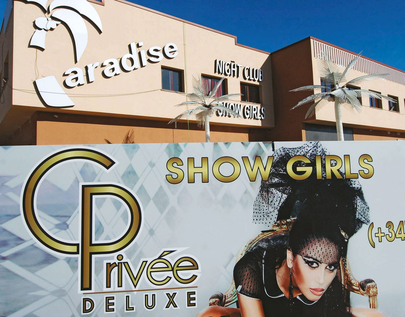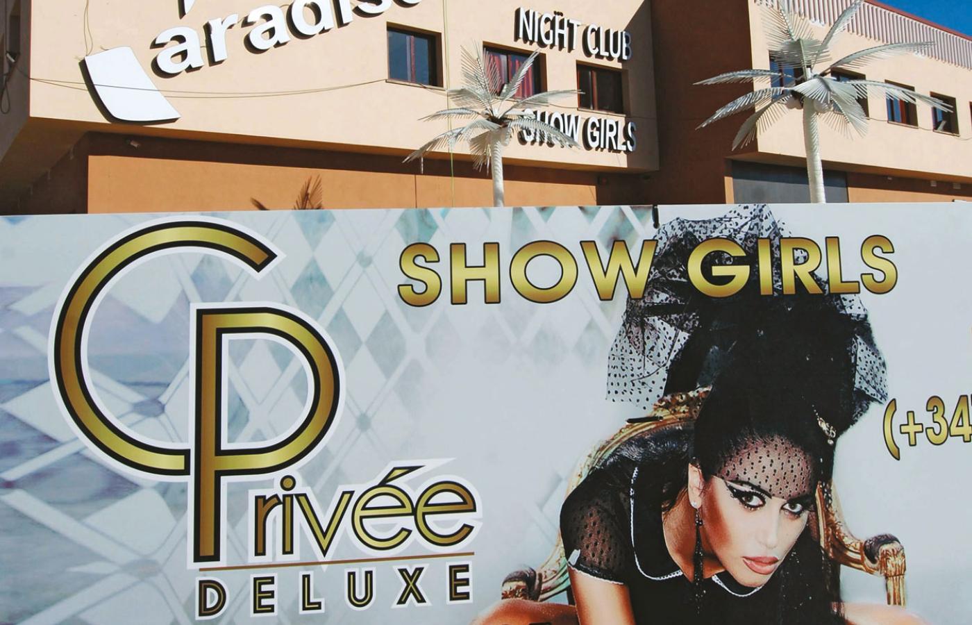 Długi dwupiętrowy budynek z brązowopiaskową fasadą. Na pierwszy rzut oka przypomina raczej zaniedbany pawilon handlowy z czasów Polski Ludowej niż znany na całą Europę dom rozkoszy. Neon w kształcie palmy i przykryte czarnym baldachimem wejście wyglądają, jakby zostały do tego pejzażu sztucznie doklejone. W połączeniu ze sporym parkingiem wygląda to bardziej jak krajobraz południowego zachodu USA niż śródziemnomorskiego wybrzeża Hiszpanii.