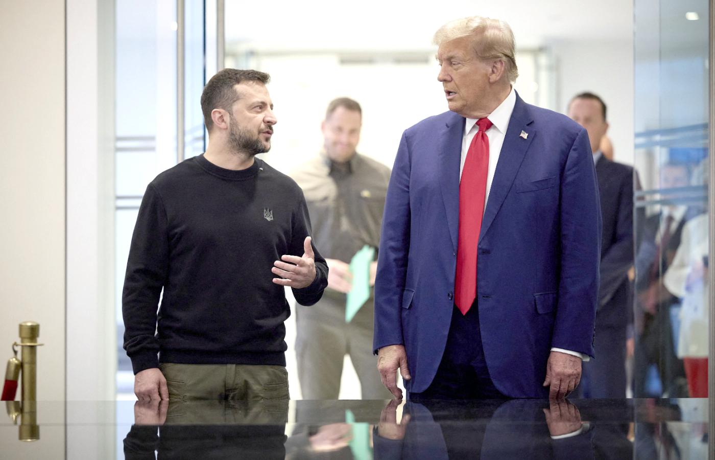 Do spotkania Trumpa z Zełenskim doszło po raz pierwszy od 2019 r., gdy spotkali się na sesji Zgromadzenia Ogólnego ONZ. Było to niedługo po rozmowie telefonicznej, w której Trump, wówczas pełniący urząd prezydenta, nalegał, aby ukraiński prezydent wszczął śledztwo w sprawie domniemanych korupcyjnych interesów Huntera Bidena w Ukrainie. Sugerował też, że zależy od tego dalsza pomoc amerykańska dla Kijowa. Telefon ten stał się powodem uruchomienia w Kongresie procedury impeachmentu przeciw Trumpowi.