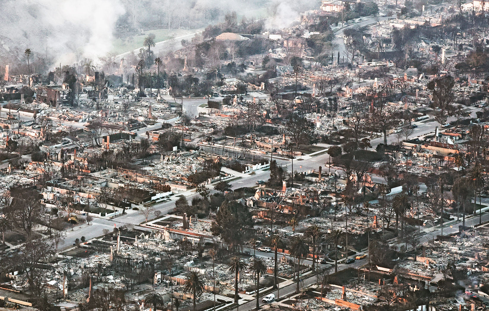 Do poniedziałku spłonęło 15 tys. ha, ewakuowano 180 tys. mieszkańców, wielu nie będzie miało dokąd wrócić, bo żywioł strawił co najmniej 12 tys. budynków, także w słynnej z hollywoodzkich celebrytów dzielnicy Pacific Palisades. Ogień opanowuje gęsto zaludnioną dolinę San Fernand i zagraża muzeum Getty’ego. Niezależnie od wszelkich zaniedbań i niedociągnięć ten rekordowy kataklizm to kolejny skutek rozregulowania klimatu. Od 1895 r., odkąd są mierzone, średnie temperatury w południowej Kalifornii wzrosły o 2 st. C, a susze w ciągu ostatnich dwóch dekad są najgroźniejsze od XVI w.