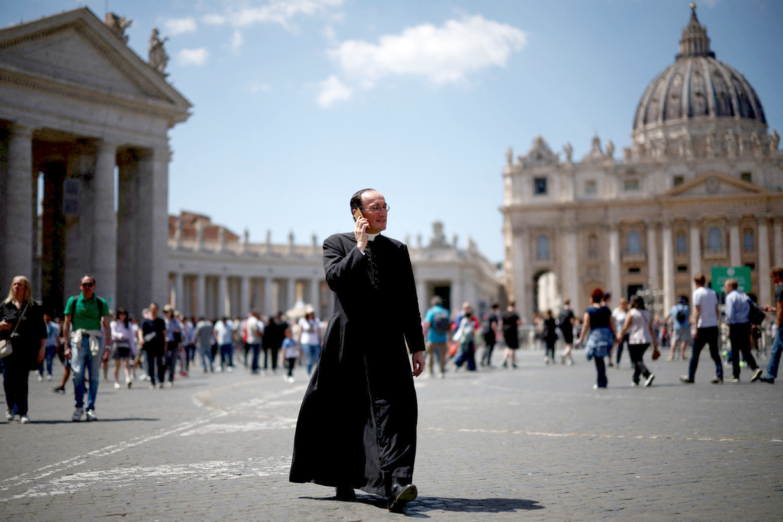 Nic specjalnego jeszcze się nie dzieje. Trafiłeś na zwykły „turnus”. Jeśli jakiś szturm się zacznie, to za parę dni – mówi Pietro, sprzedawca w sklepie z pamiątkami i dewocjonaliami przy Bazylice św. Piotra. Pogoda jest już letnia, w środku dnia temperatura dochodzi do 27 st., na niebie ani jednej chmury. Towarami pierwszej potrzeby stają się czapki z daszkiem, woda i kremy z filtrem. Poza zbudowanymi na czas transmisji z pogrzebu Franciszka platformami dla kamer i barierkami wyznaczającymi kierunek ruchu do i z placu – nic nie wskazuje, żeby w Watykanie działo się ostatnio coś szczególnego. Żeby się dowiedzieć o konklawe, trzeba zapytać, poczytać, pogrzebać nieco głębiej, gdzieś w duszy obecnych tu katolików.