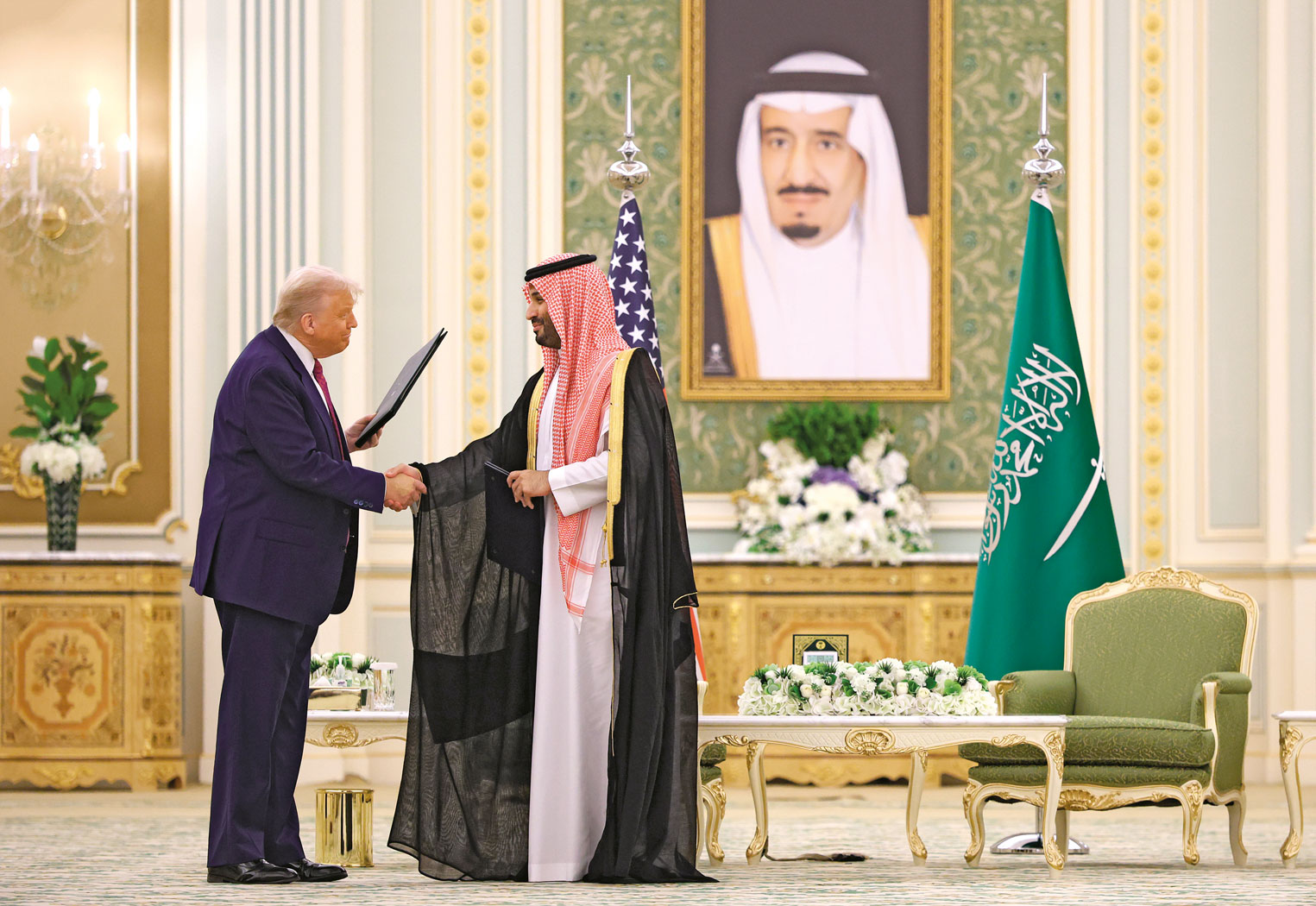 Najpierw Donald Trump pojechał z pierwszą zagraniczną wizytą – nie licząc pogrzebu papieża Franciszka – do krajów Zatoki Perskiej (którą chce przemianować na Zatokę Arabską). Gospodarze wiedzieli, jak go przyjąć. Air Force One eskortowały saudyjskie F-15, na lotnisku był gigantyczny dywan i kolejna eskorta – tym razem saudyjskiej kawalerii na arabach. A potem żyrandole i „największa umowa na sprzedaż broni w historii”. Arabia Saudyjska wyda na amerykański sprzęt 142 mld dol., a w sumie zamierza zainwestować w Stanach Zjednoczonych 600 mld, m.in. w sztuczną inteligencję. Potem była wycieczka na pole golfowe, wizyty w Katarze i Zjednoczonych Emiratach Arabskich, gdzie Trump podpisał kolejne „najlepsze” umowy, a rząd pierwszego z tych państw potwierdził obietnicę oddania prezydentowi USA wartego 400 mln dol. Boeinga 747 – jako dowód gościnności.