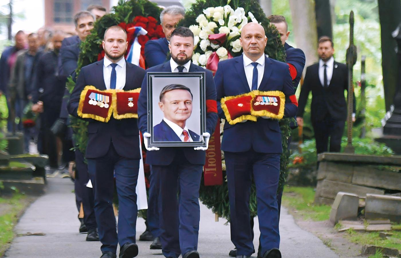 Centralny Szpital Kliniczny to miejsce legendarne. Tu leczone są najważniejsze osoby kraju. Nawet Władimir Putin, który – co wiedzą wszyscy zebrani – jest krzepkiego zdrowia, ale gdyby nagle zachorował, też trafiłby tutaj. W klinice czeka na niego osobny oddział, po inwazji na Ukrainę rozbudowany o bunkier dla VIP-ów. Sala pożegnań też należy do historii. Była ostatnim przystankiem dla wielu dygnitarzy od czasów radzieckich. Uroczysty wystrój, pomalowane na złoto aluminiowe ramy przywodzą na myśl późny Związek Radziecki. Teraz zebrało się w niej trzech wicepremierów, dziewięciu ministrów, a nawet zastępca szefa administracji prezydenta. Czuć było napięcie.