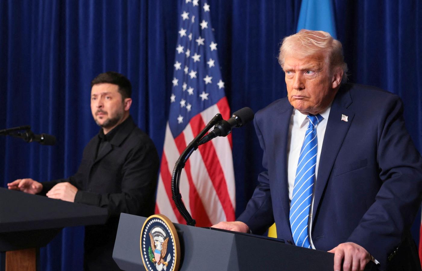 Aby zatrzeć wrażenie fiaska, Trump perorował na konferencji w rażącym oderwaniu od rzeczywistości. „Rosja chce, aby Ukrainie się udało” – powiedział. Słuchając tego, ukraiński prezydent dyplomatycznie milczał. Nauczony doświadczeniem z awanturą w lutym w Białym Domu, skąd go wyproszono, gdy próbował z Trumpem polemizować, wiedział, że nie należy publicznie mu się sprzeciwiać.